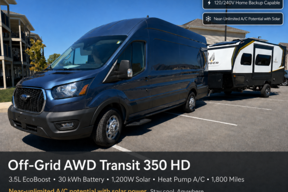 2025 Ford Transit 350 HD AWD 30kWh 1200W Solar Heat Pump A/C 1800mi