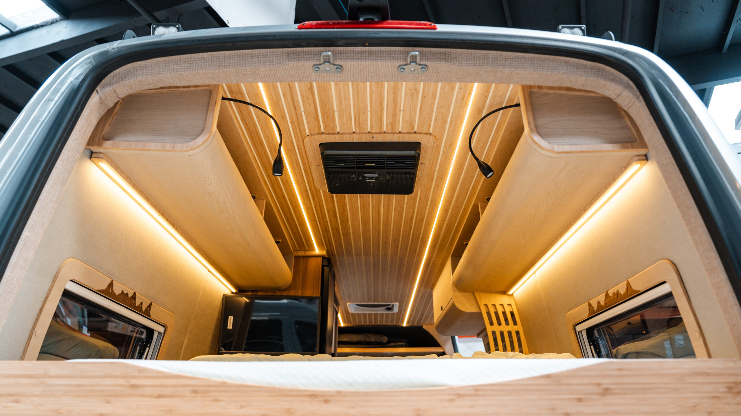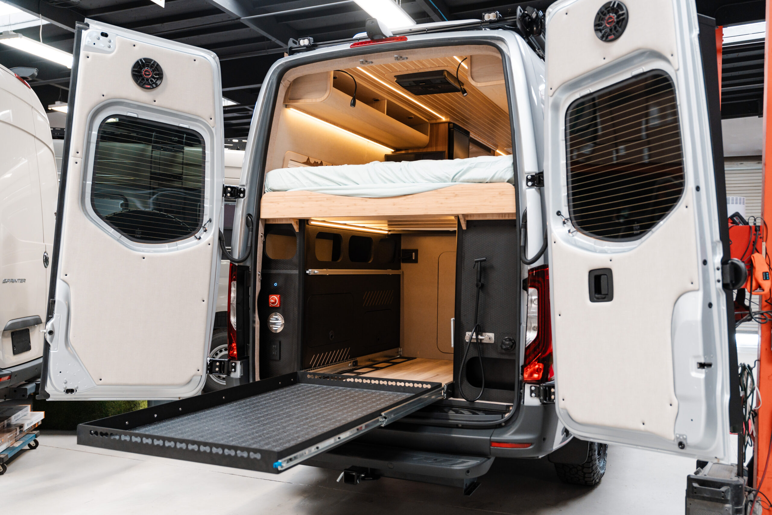 We manufacture trail ready vans so all you have to do is grab the keys and hit the accelerator, visit our website to see details on our signature layout as well as potential add ons to your current rig.