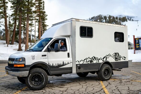 Winterized does not equal Blizzard-proof. Even vans that claim that they are winterized will not fully function in average cold ski town temperatures, let alone storms. The water system, gray water, and batteries will freeze and shut down.
