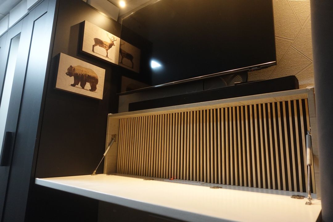 The Techno Barbarian way means meeting your needs no matter how strange or creative they may be (i.e. a motorcycle ramp and winch in a box truck toy-hauler) and using the latest technology to provide a mobile living solution that mirrors the comforts of a traditional residence.