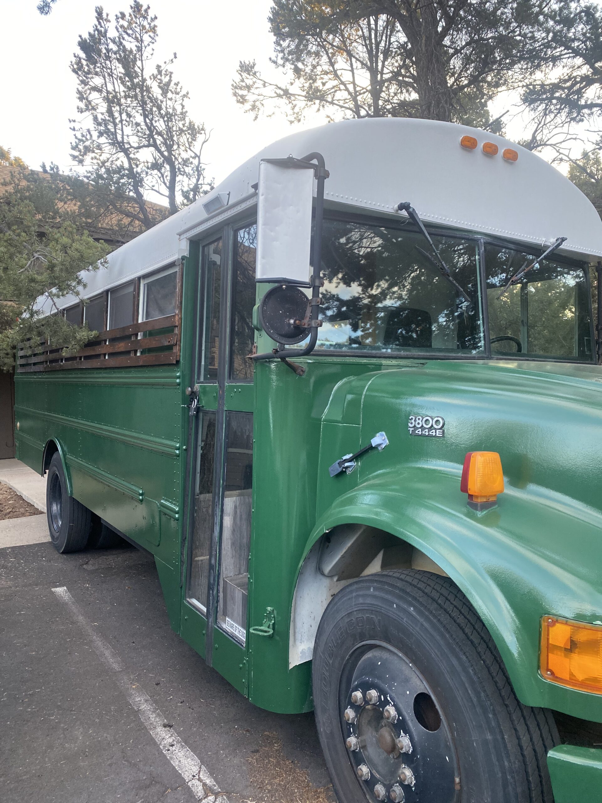 This 1999 International 3800 (27ft) Skoolie is ready for off-grid living or traveling! Powered by a reliable 7.3L diesel engine with a T444E transmission, this skoolie features a complete off-grid setup, including solar panels, inverter, battery bank, and freshwater/grey-water tanks. The insulated interior offers a queen bed, kitchen with fridge and stove, composting toilet, and plenty of storage. It comes fully equipped to hit the road today, plus includes extra materials like spare parts, tools, and more. Whether you’re looking to travel across the country or live off the grid in comfort, this bus is road-tested and ready to roll. Located in Grand Canyon, Arizona but will deliver for an additional fee. Asking $65,000 or best offer. Serious inquiries only—message for more details, photos, or to schedule a tour.
