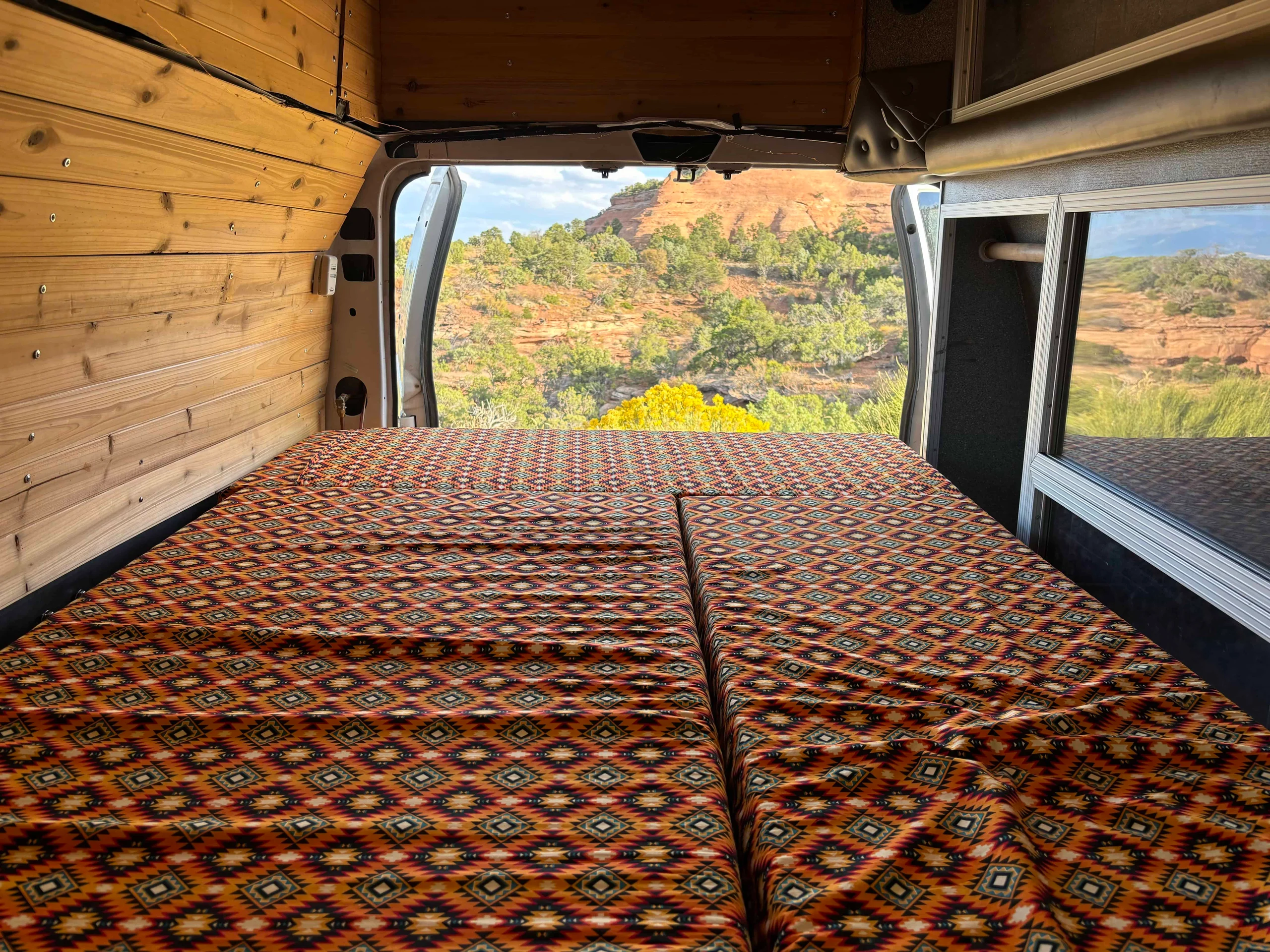 -A ton of LOCKABLE storage underneath bed, in cabinets on wall, and behind driver’s seat.