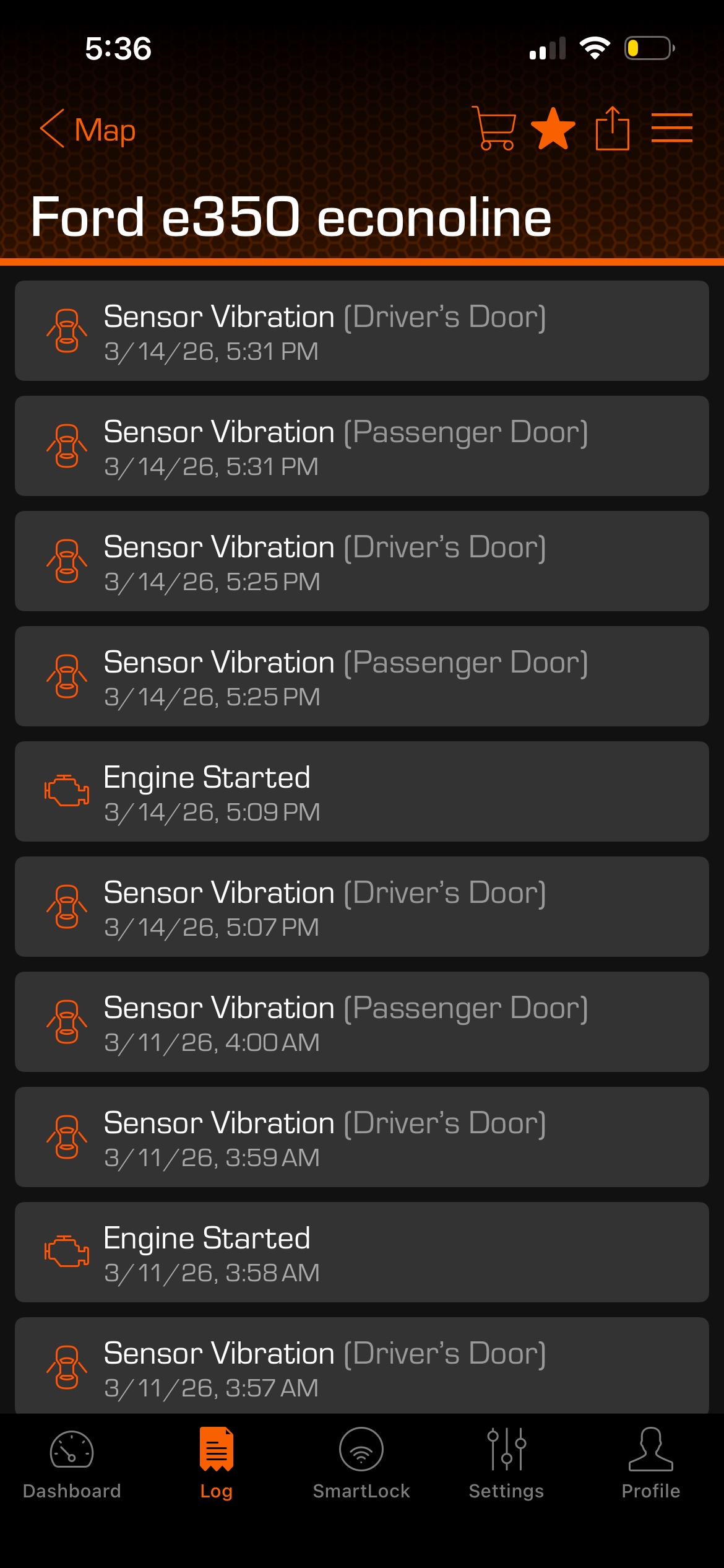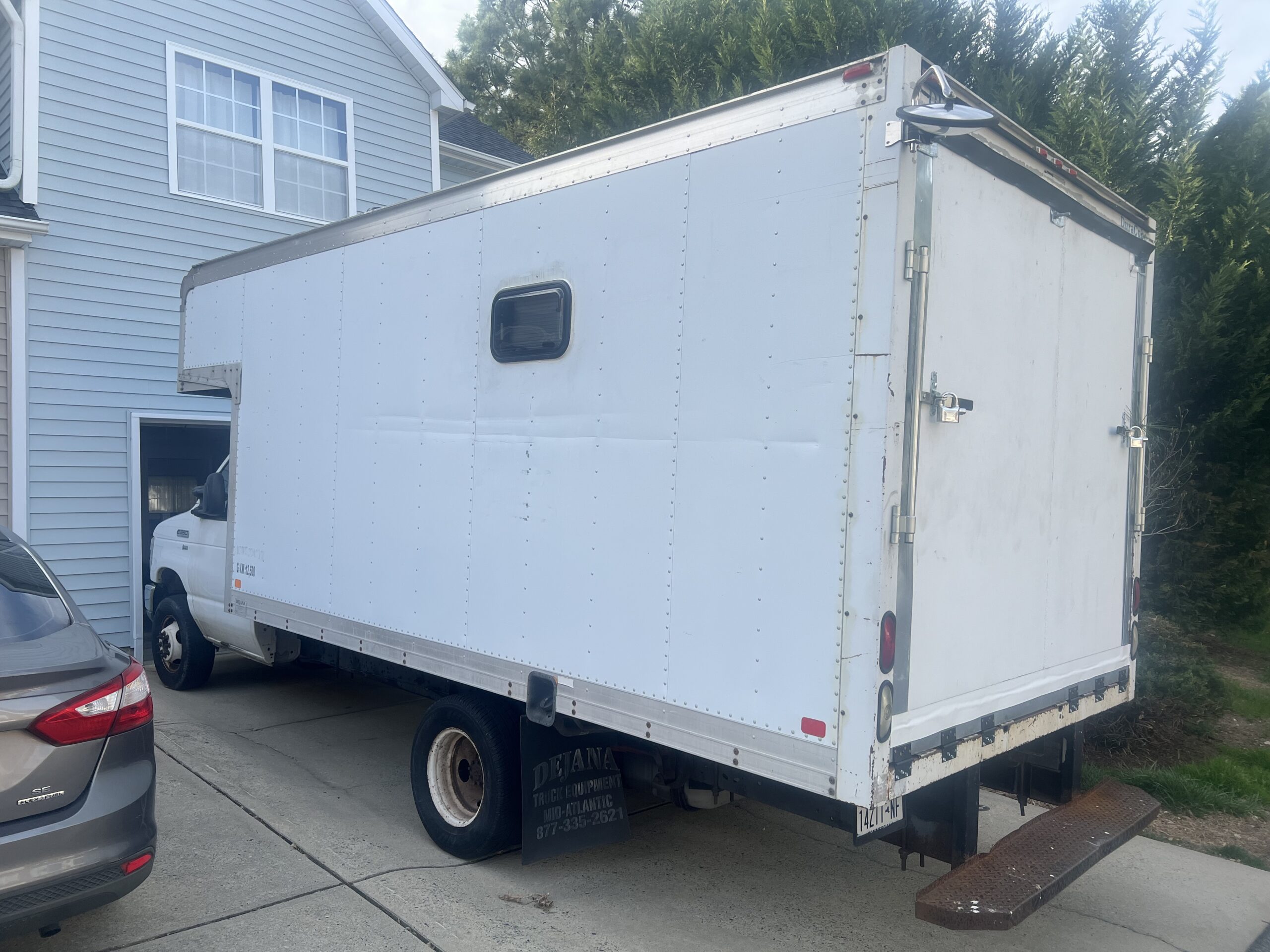 - The truck has an enternal pass through door with a battery powered alarm attached.