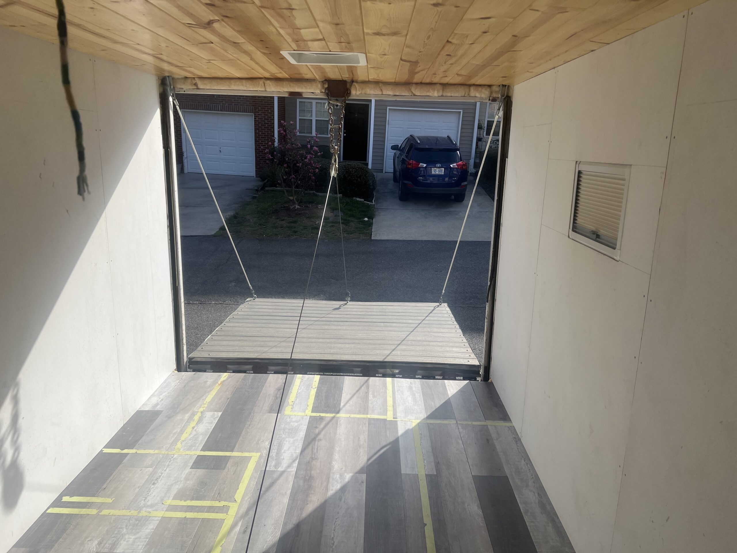 - ( 6ft 7in H x 7ft 2in W ) Drop Down Deck/ Ramp/ Insulated wall, Trexx composite decking floor/wall paneling