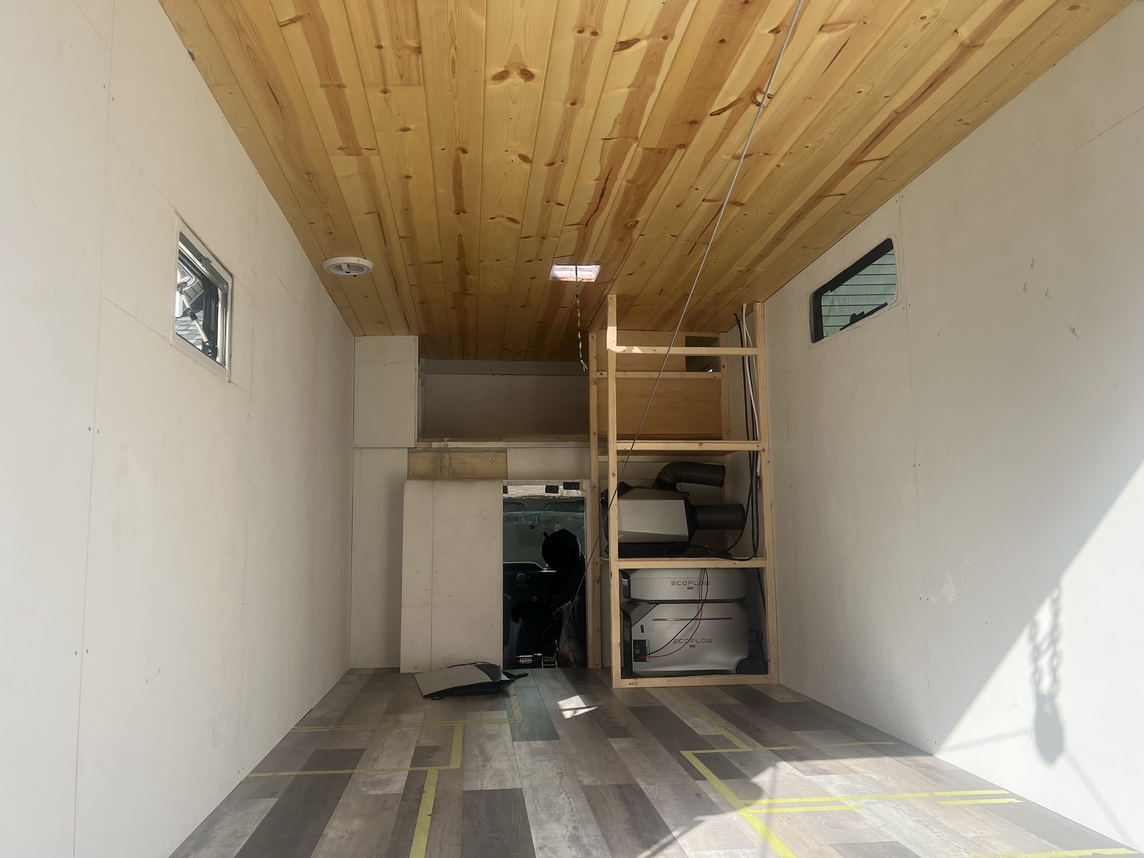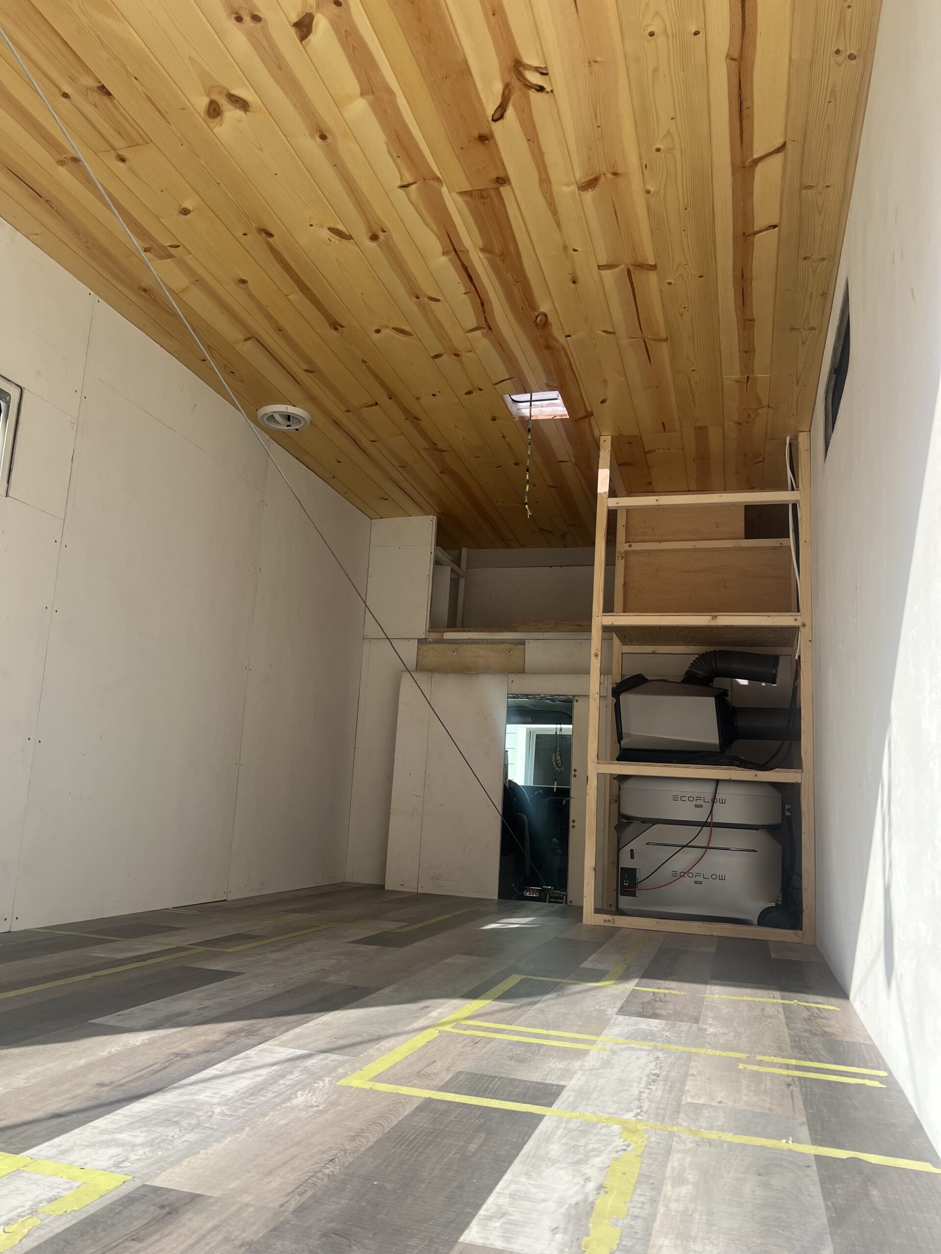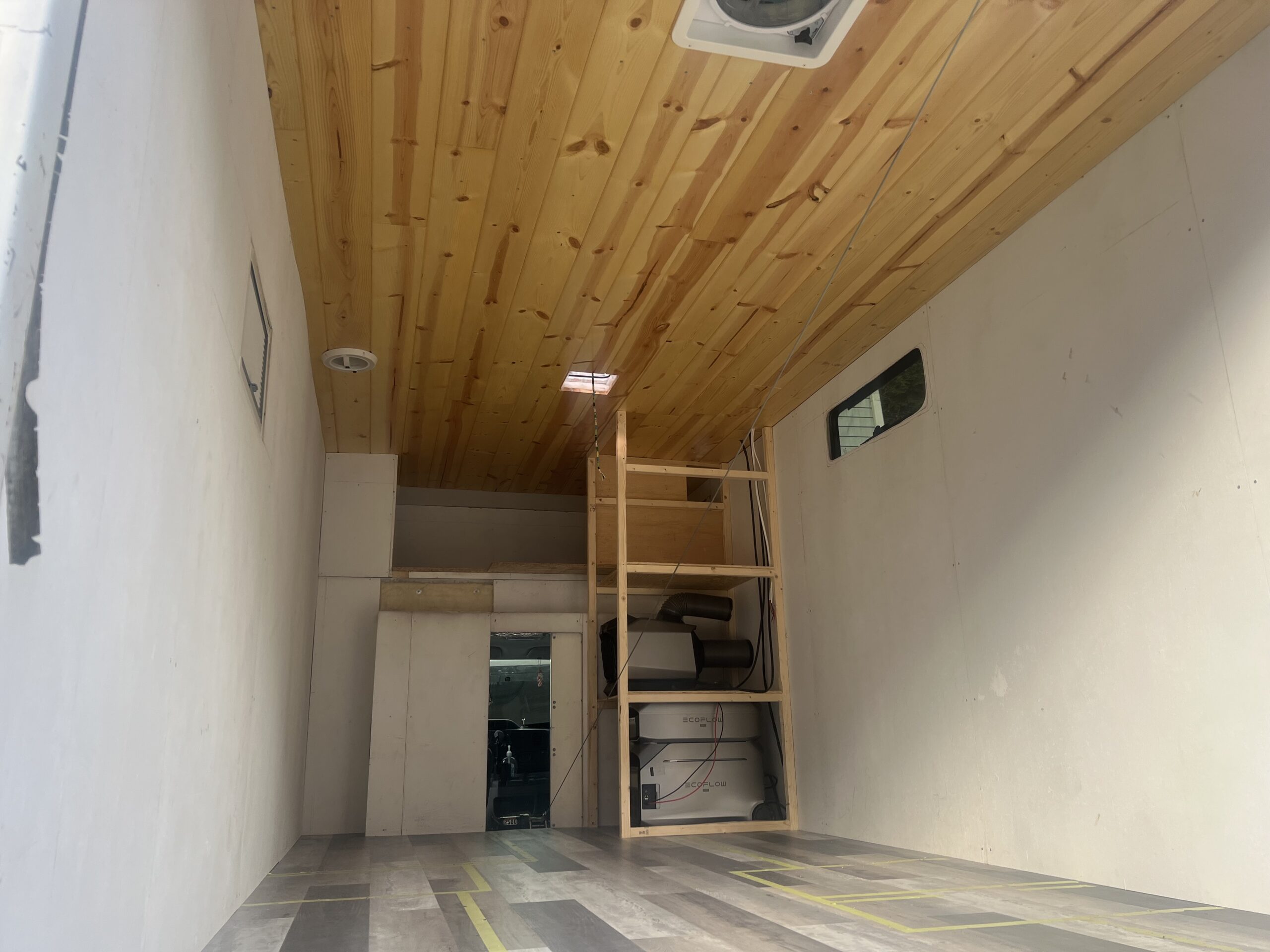 We consider him partially built, but he is pretty much an open concept commercial space on wheels that has a powerful electrical system (multiple Eco Flow power stations, Rooftop mounted Bouge RV Yuma 200 watt solar panels, portable Eco Flow solar panels, and more ) that’s ready to go, or a no-build builders dream rig, or honestly anything you would like him to be.