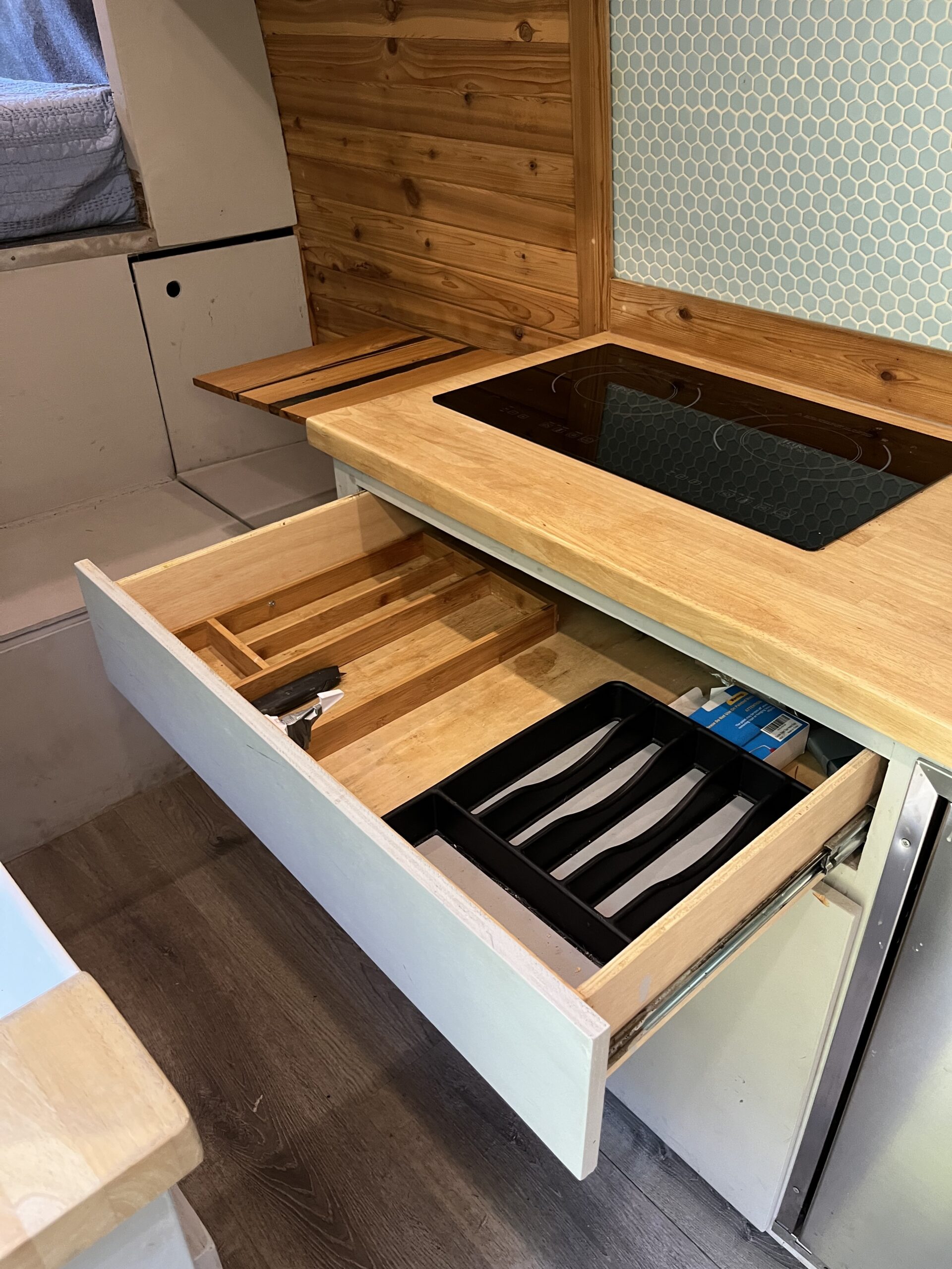 This van was originally converted by a family in Texas, then dialed in by Van Specialties in Tualatin, Oregon — real pros. She’s been lovingly maintained by Pro Automotive & Diesel near Portland. Mechanically sound and road-trip ready.