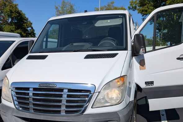 2012 Mercedes Sprinter 3500 (dually, extended — the largest Sprinter you can buy). Incredibly stable & drives like a dream