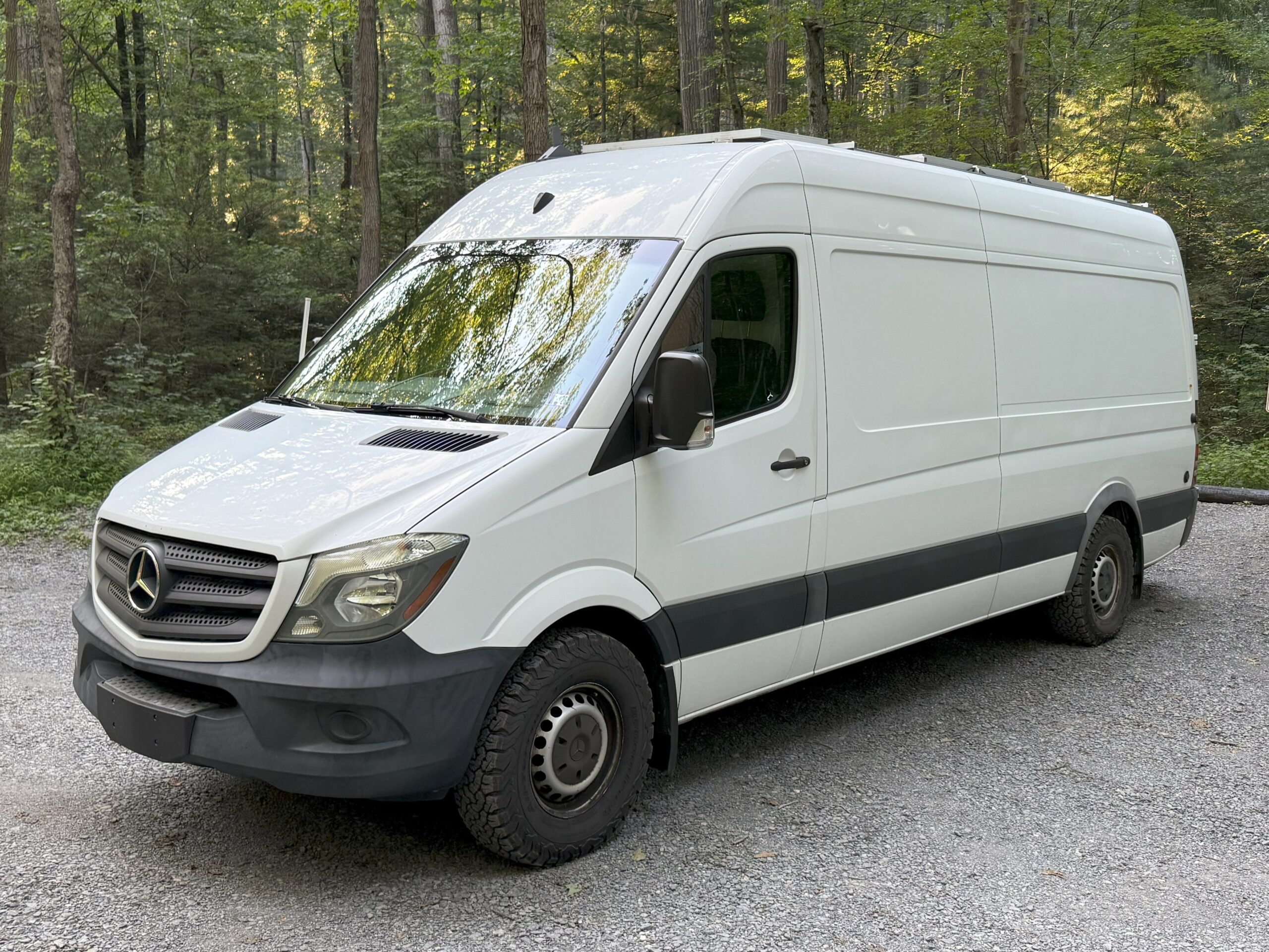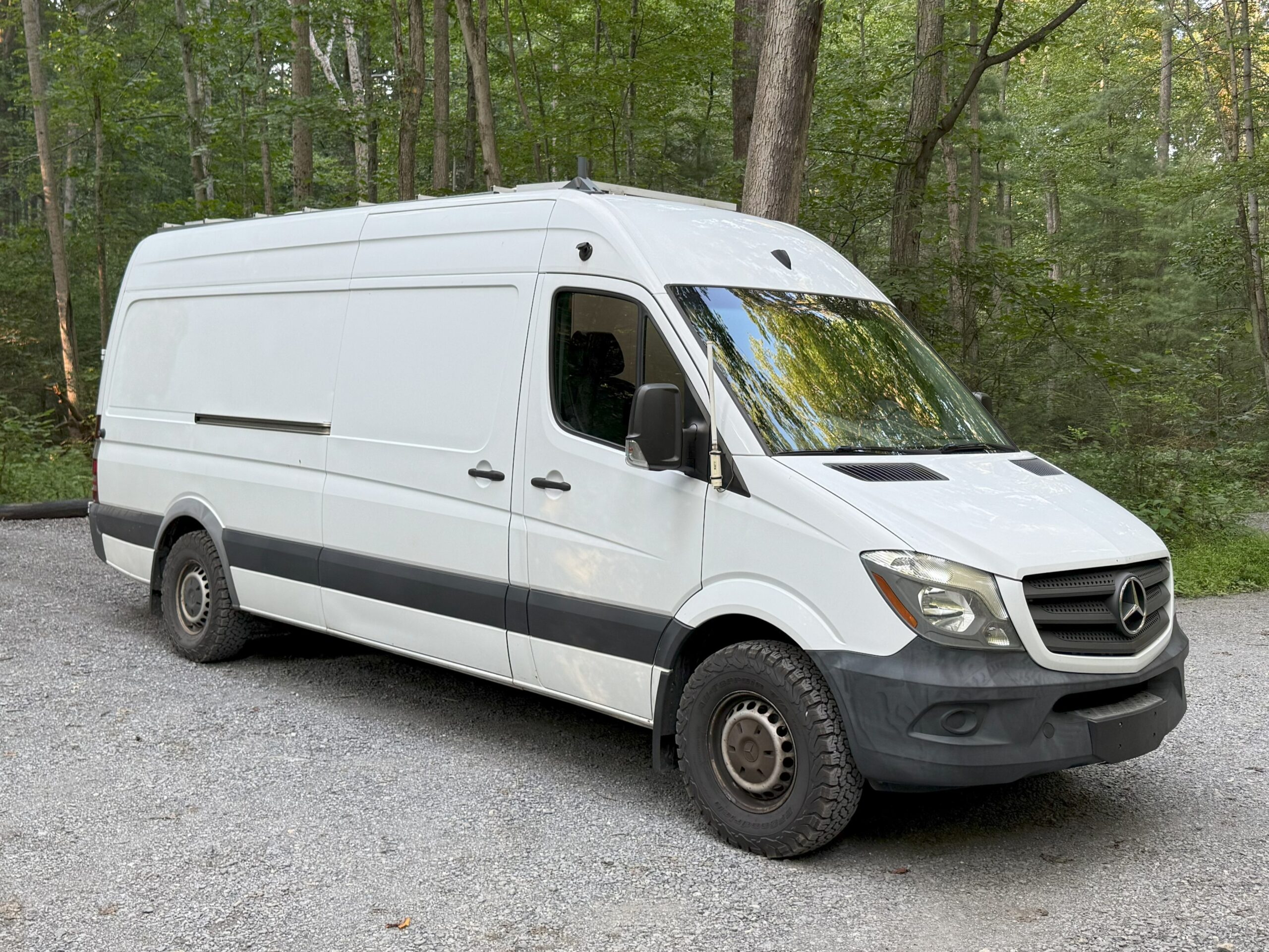 The mileage may seem high, however; a lot of the work that pops up around this mileage has been taken care of. The van has been regularly serviced and systems that were worn or on their way out have been replaced. Most notably a brand new engine was put in at 122,000 miles (debris fell in during an intake manifold replacement and the engine was destroyed when run after), the rear axles and differential were replaced, and a new exhaust (engine to tailpipe, DPF and all) was put in this year. New BF Goodrich KO2 tires were put on this year too. Other work has been done as well for various things. All work was done professionally at Sun Motors in Mechanicsburg Pa. The van is refreshed and ready to go for its next adventure.