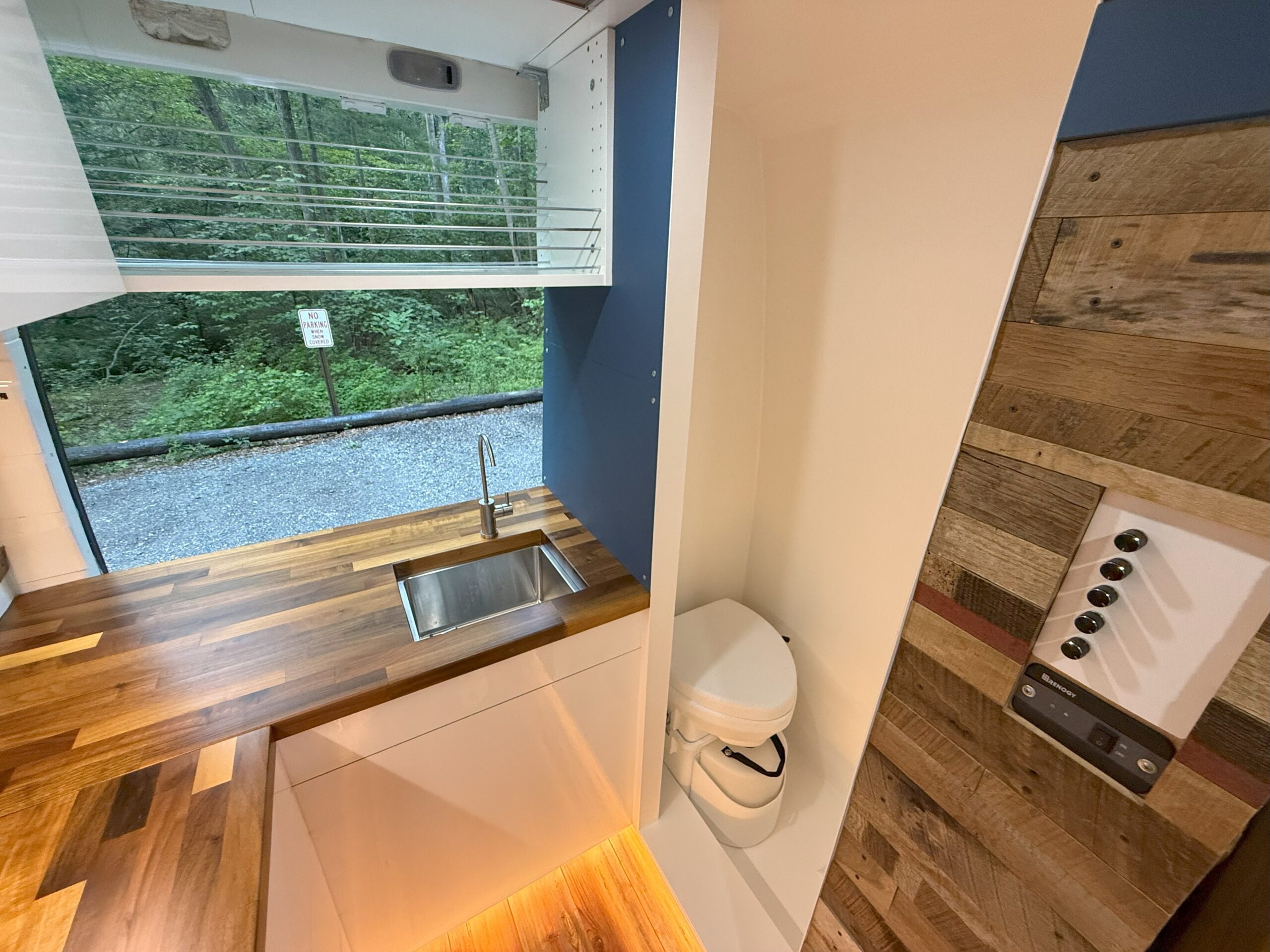- Composting toilet and sealed wet room. Can easily be converted to a shower but I never really found a need to do so.