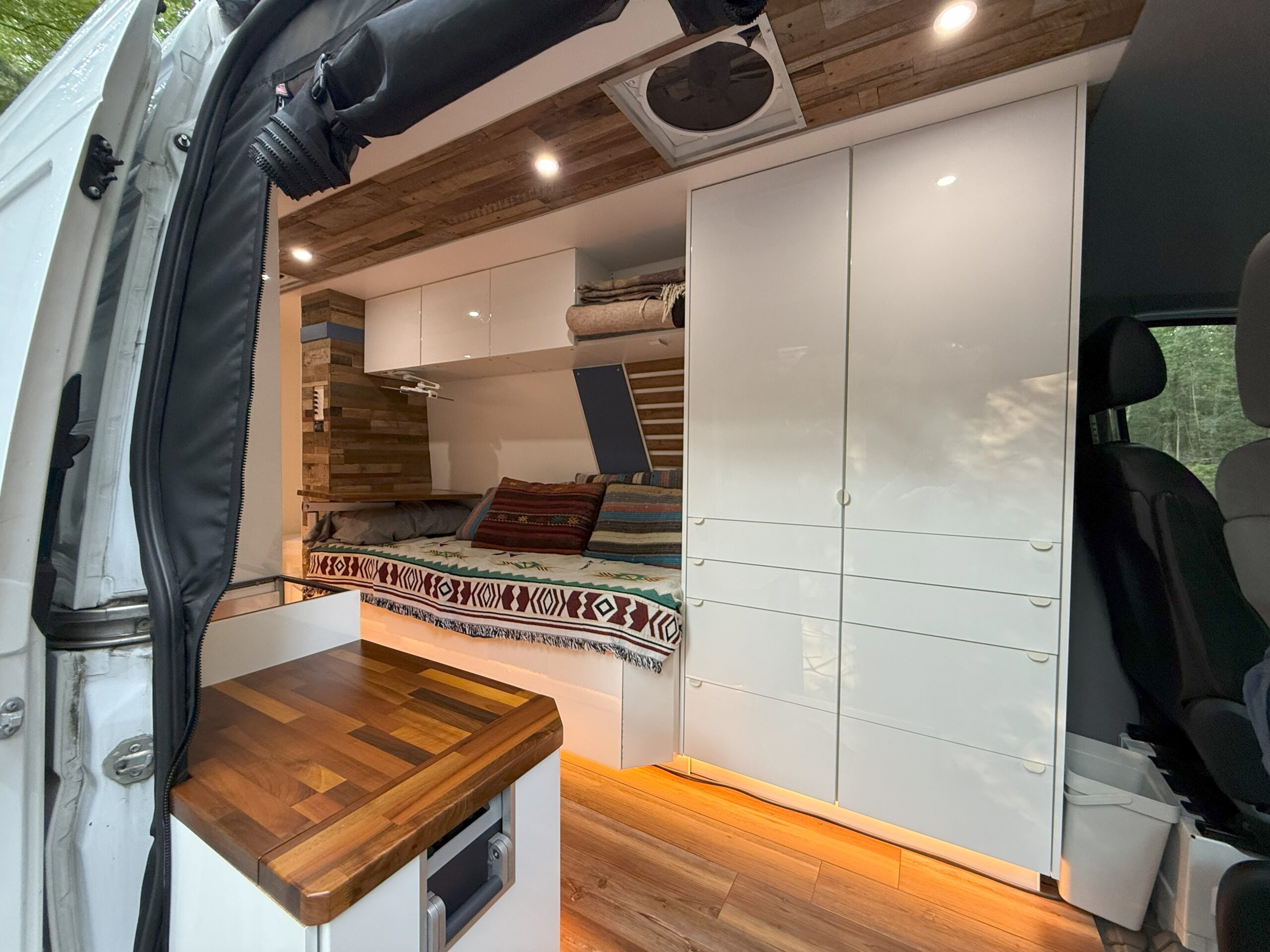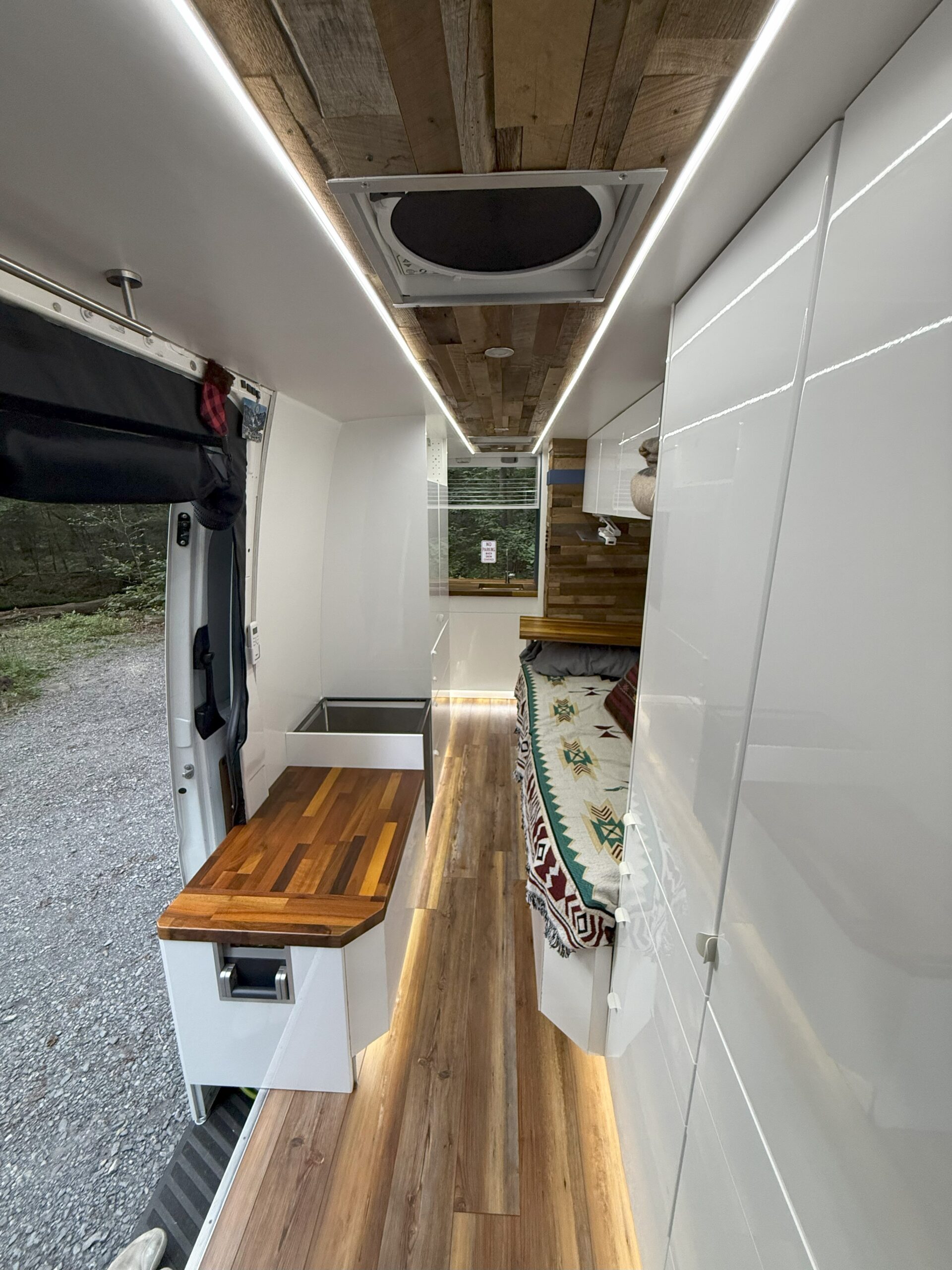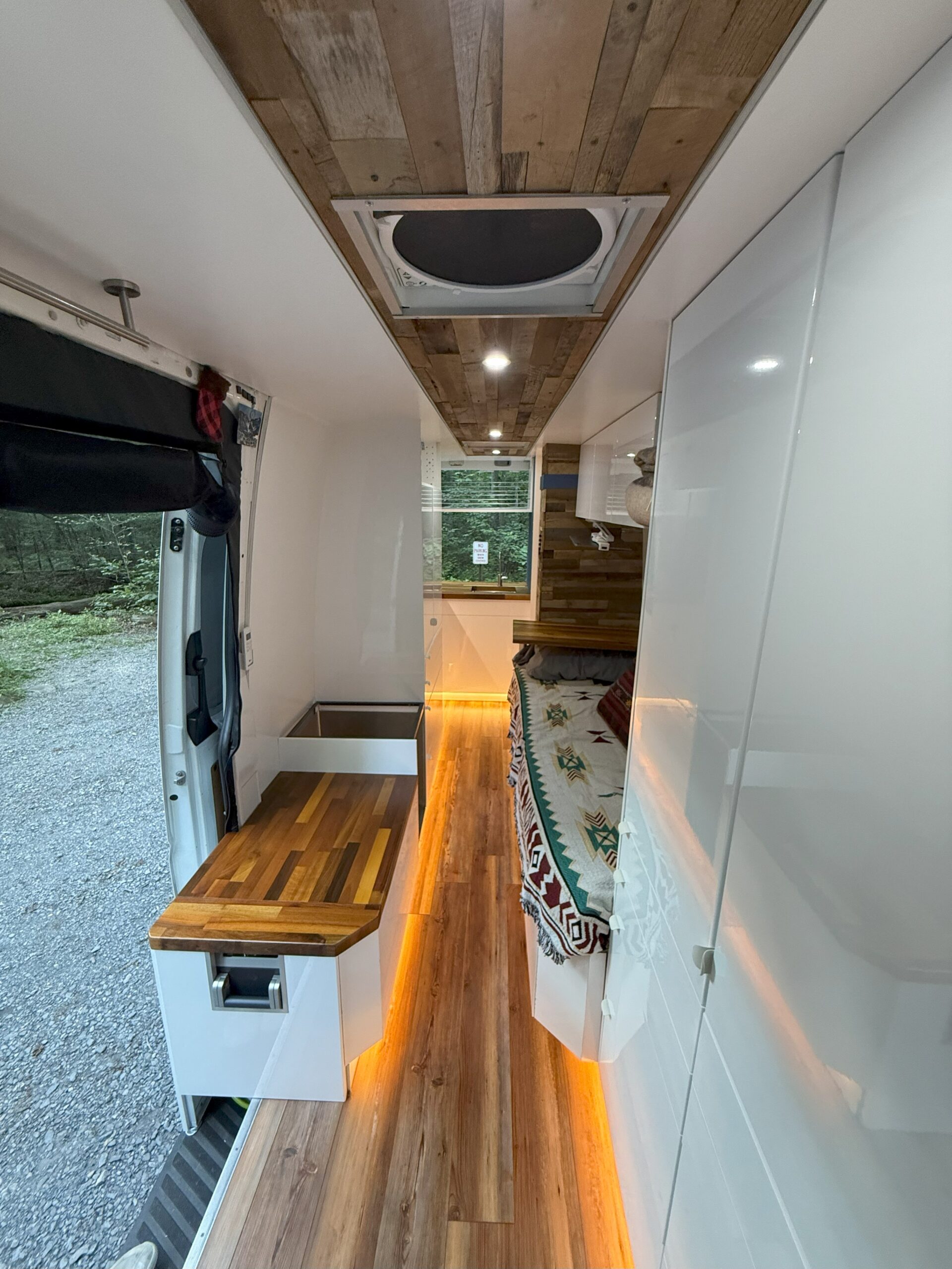 While it was designed for full time living I never was able to use it to its fullest. Due to my job, I never was able to take any grand trips or use it as intended. It became more of a weekend vehicle for me. As such the interior is very clean and looks basically like it did when it was first built. Now that life is moving in a different direction for me I am hoping to sell the van to someone who will continue the adventure.