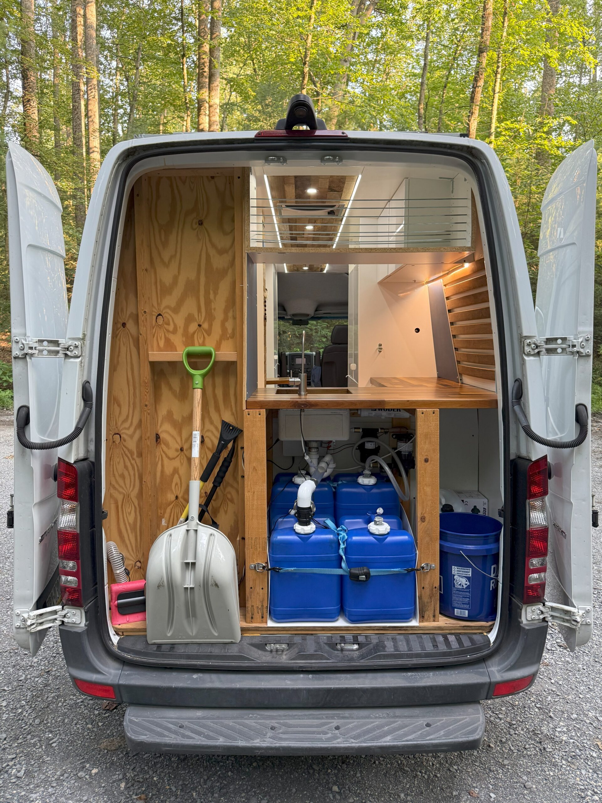 - Water tanks are 7gal each so that they can be carried. This makes it much easier to find fillup locations, especially in the backcountry.