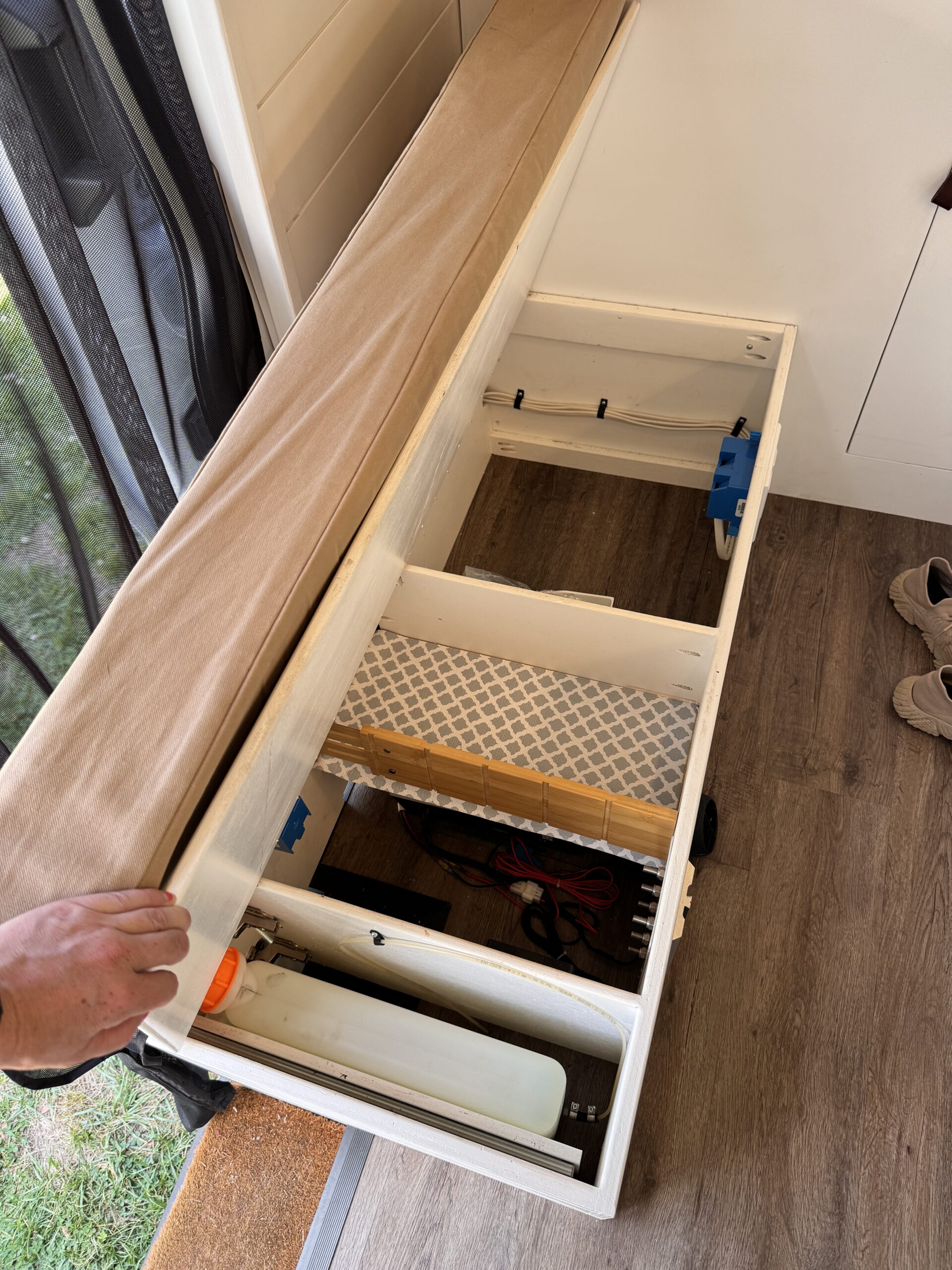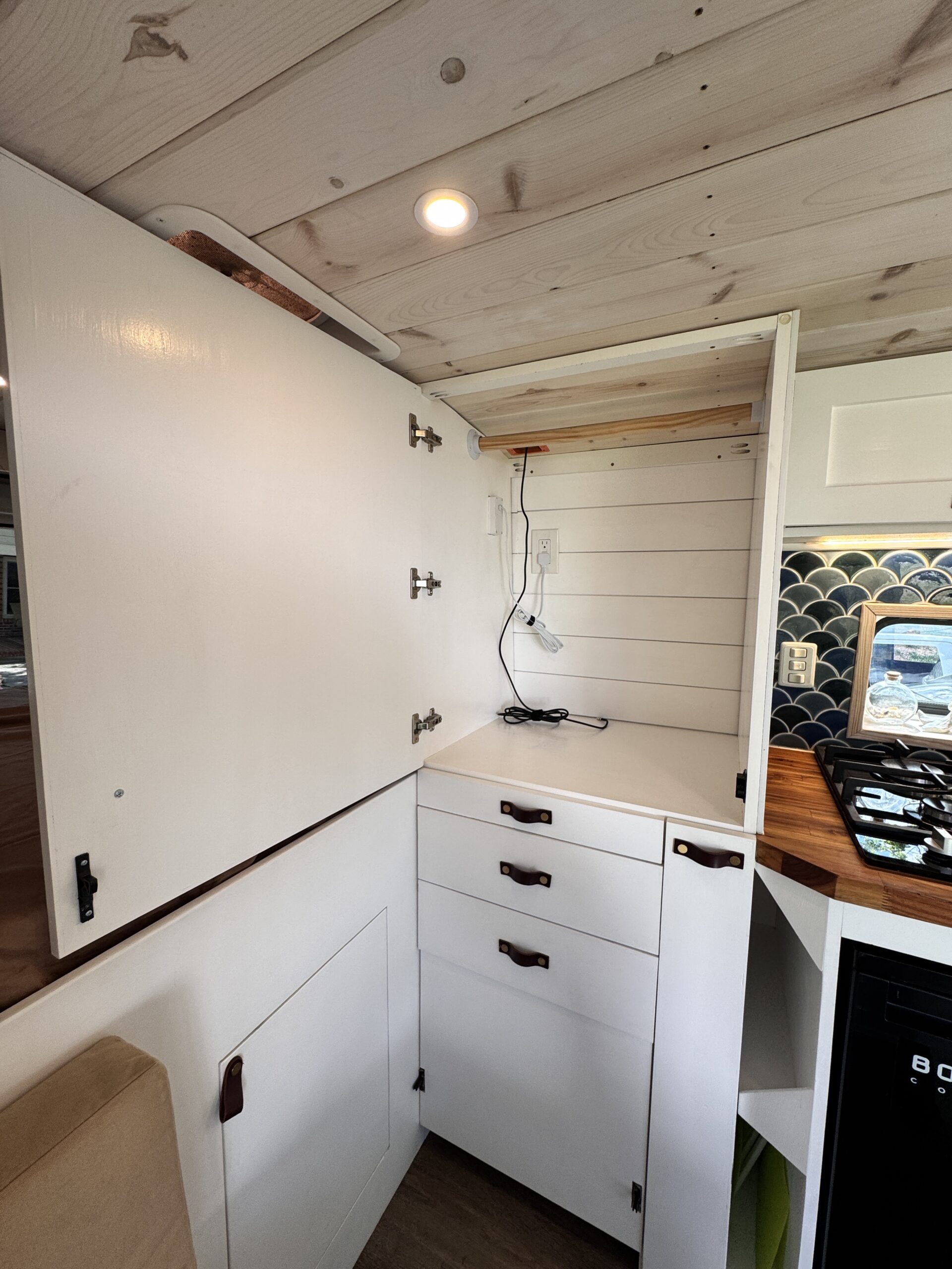 Designed to operate comfortably off-grid for multiple days. Major electronics run on efficient DC power, including the refrigerator, lights, vent fan, water pump, and diesel heater, minimizing inverter use and maximizing usable battery capacity. Plenty of power for laptops, Starlink, phones, a blender, crockpot, and more during extended off-grid stays.