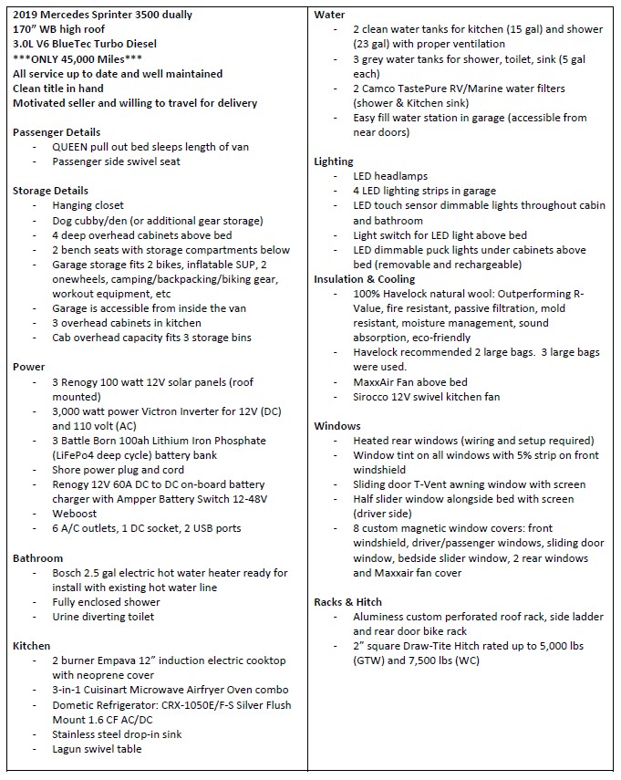 2019 Professionally Built Mercedes Sprinter AWD