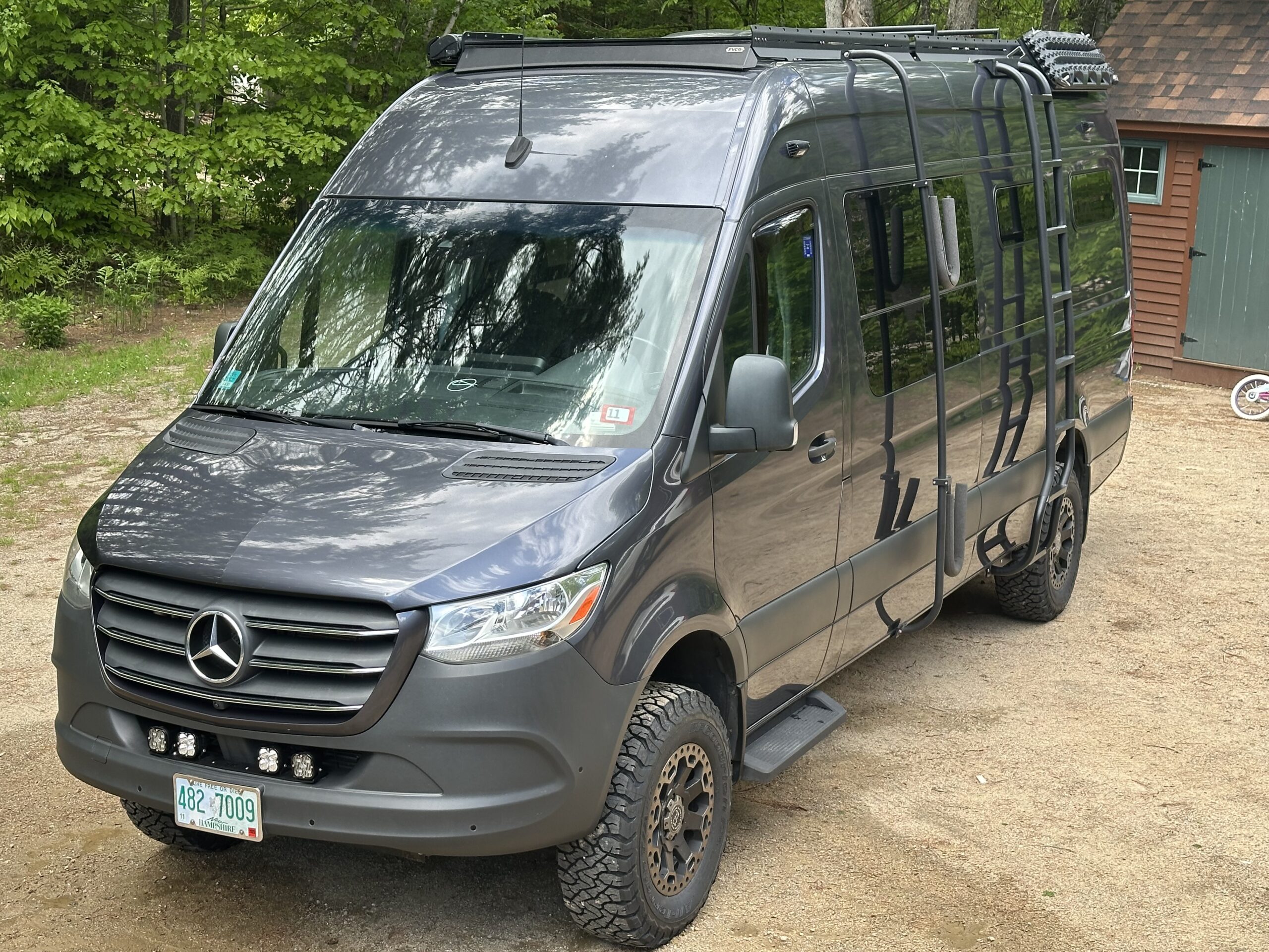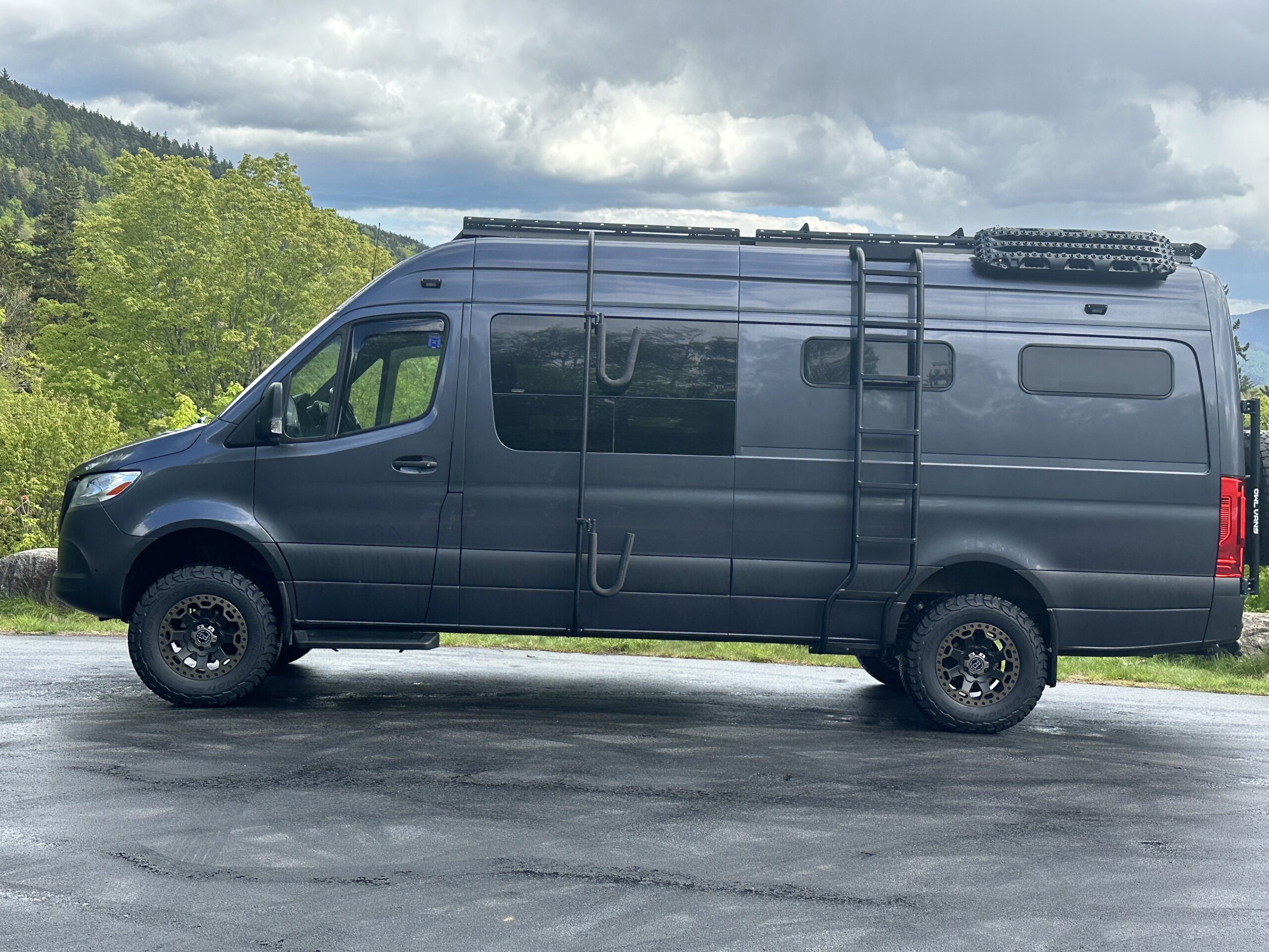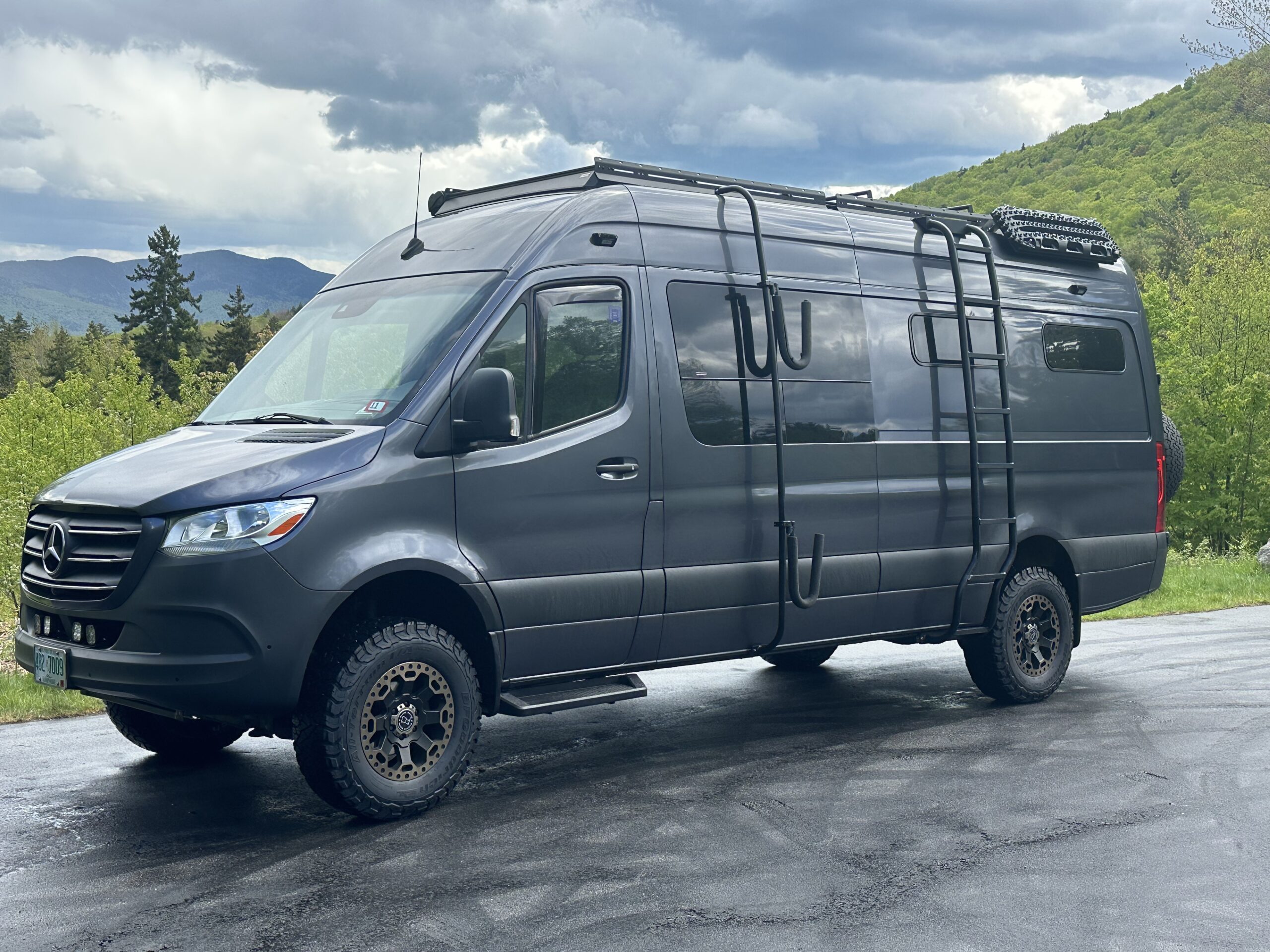 The van was recently serviced by Mercedes of Scarborough. It’s had the rear brakes replaced, an oil change and on 5/22/25 I had four BFG KO3 tires mounted on the Black Rhino wheels.
