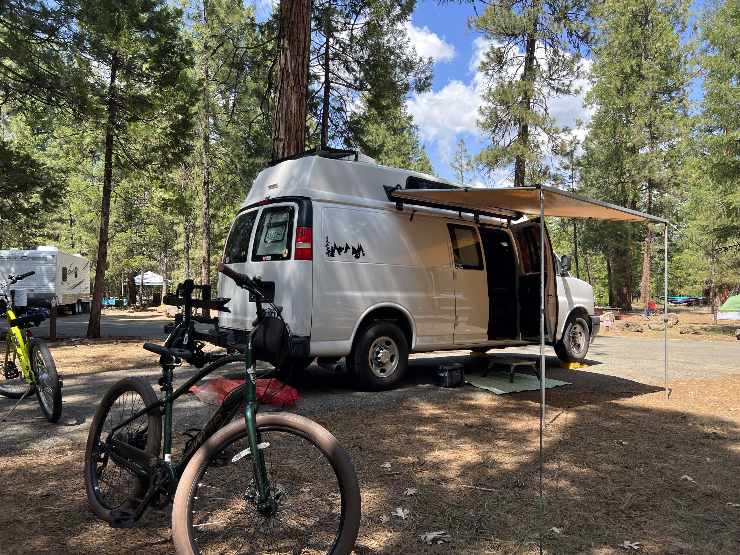Van Mechanical: 6.0 V8 340hp with 6 speed automatic. Very reliable. On trips, we routinely get 14 to 17mpg depending on terrain. I have seen 18 mpg going down the freeway to Southern California even fully loaded with the raised top. Upgraded to New Bilstein Series 4600 Monotube shocks both front and rear (often recommended to improve handling) Rear 2” receiver hitch. (no towing receptacle as we used for carrying our ebikes only). Van has not been used to tow. One year old Cooper Discoverer AT3 All Terrain Tires with 4000 miles on them. Regular oil changes every 4K – 6K miles with full synthetic. Receipts included. Excellent CarFax History. Never in an accident. Pink slip is in our possession and in our current name and address. Smog will be completed by the seller.