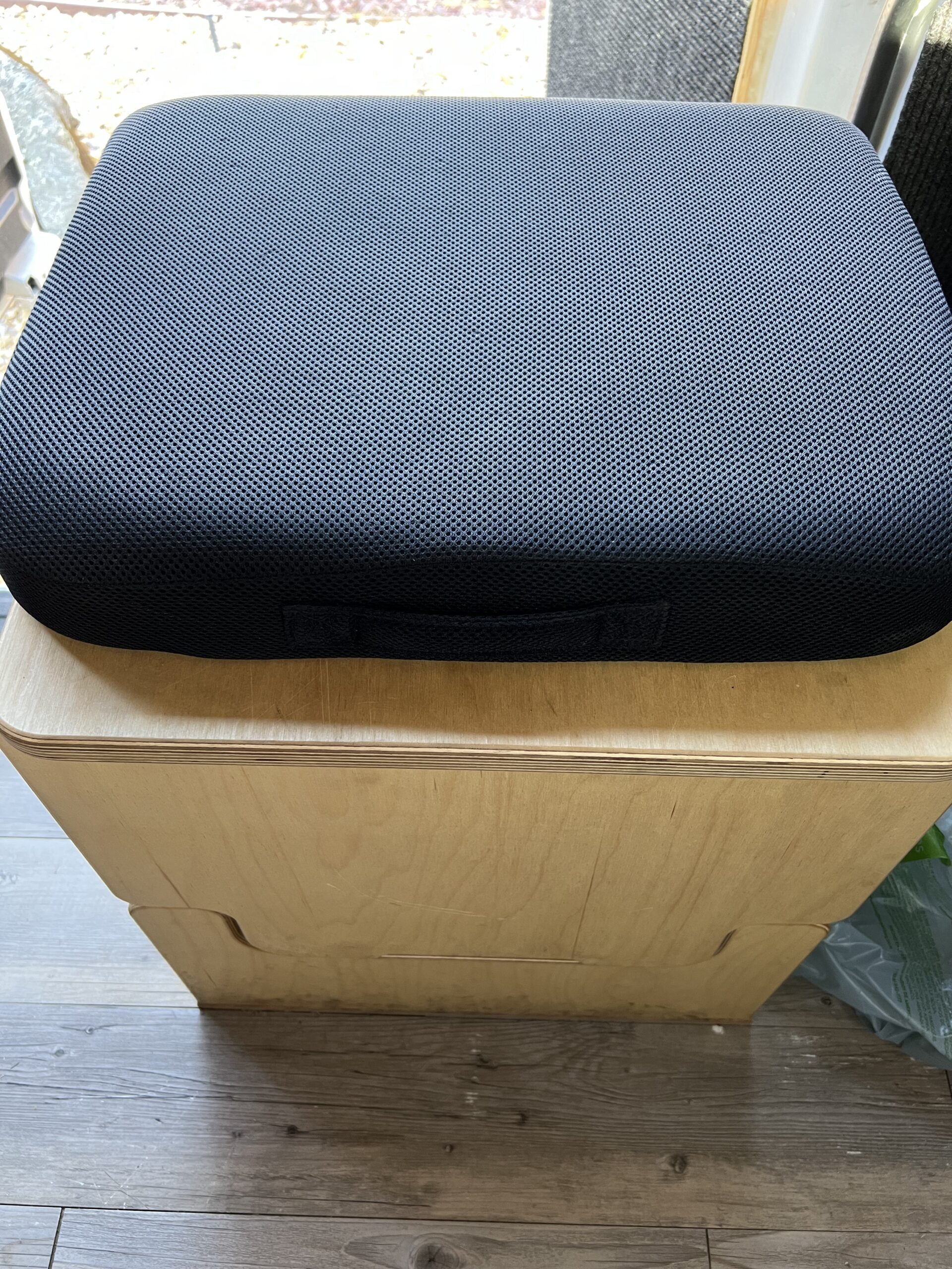 Weekender Vans Bamboo Toilet Lift Off Cabinet which contains a brand new SeaFlo portable toilet. (we replaced because we wanted the new owner to have a brand new toilet)