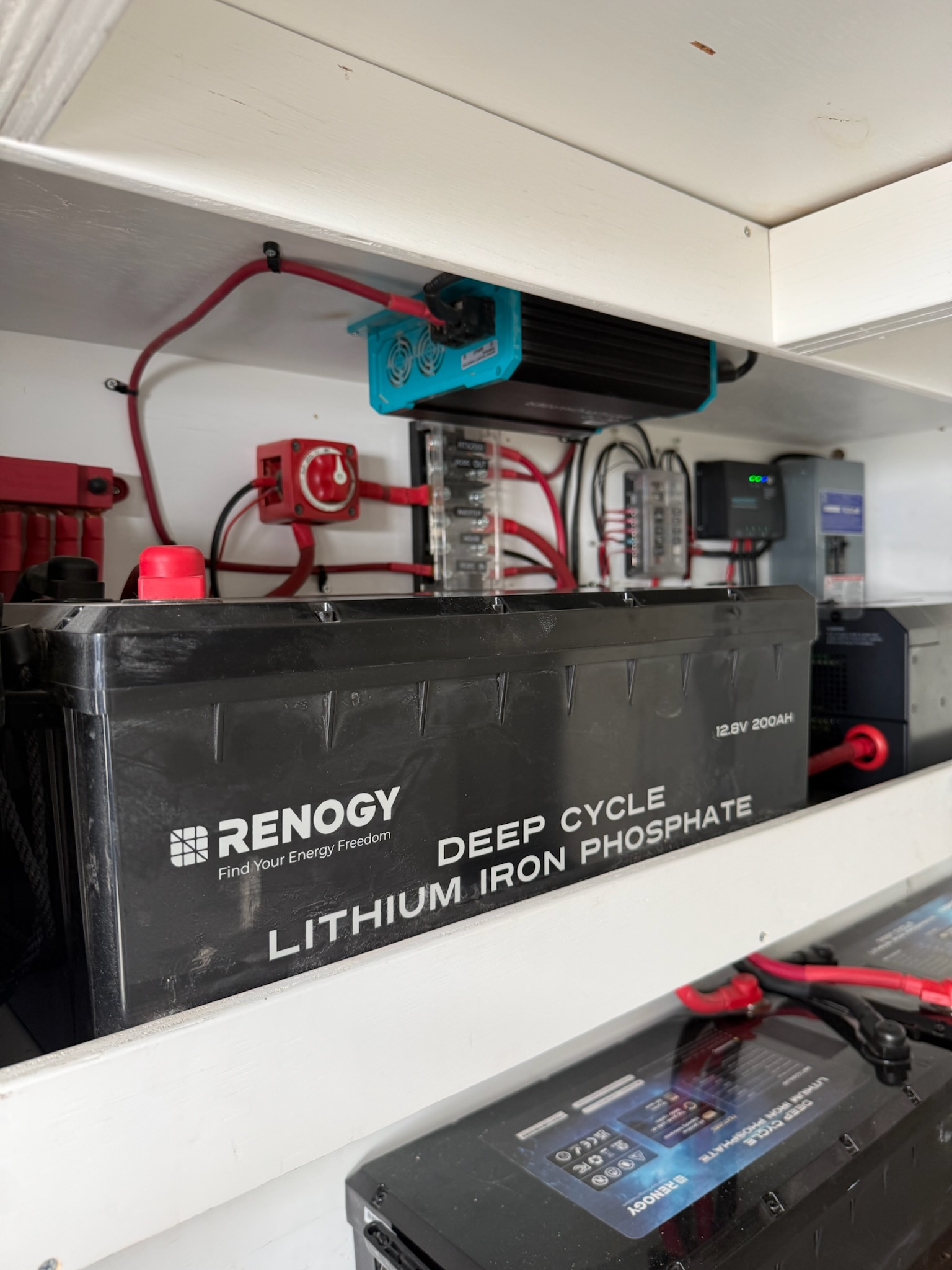 – 800Ah Renogy lithium house bank at 12V — **double** the capacity of most van builds