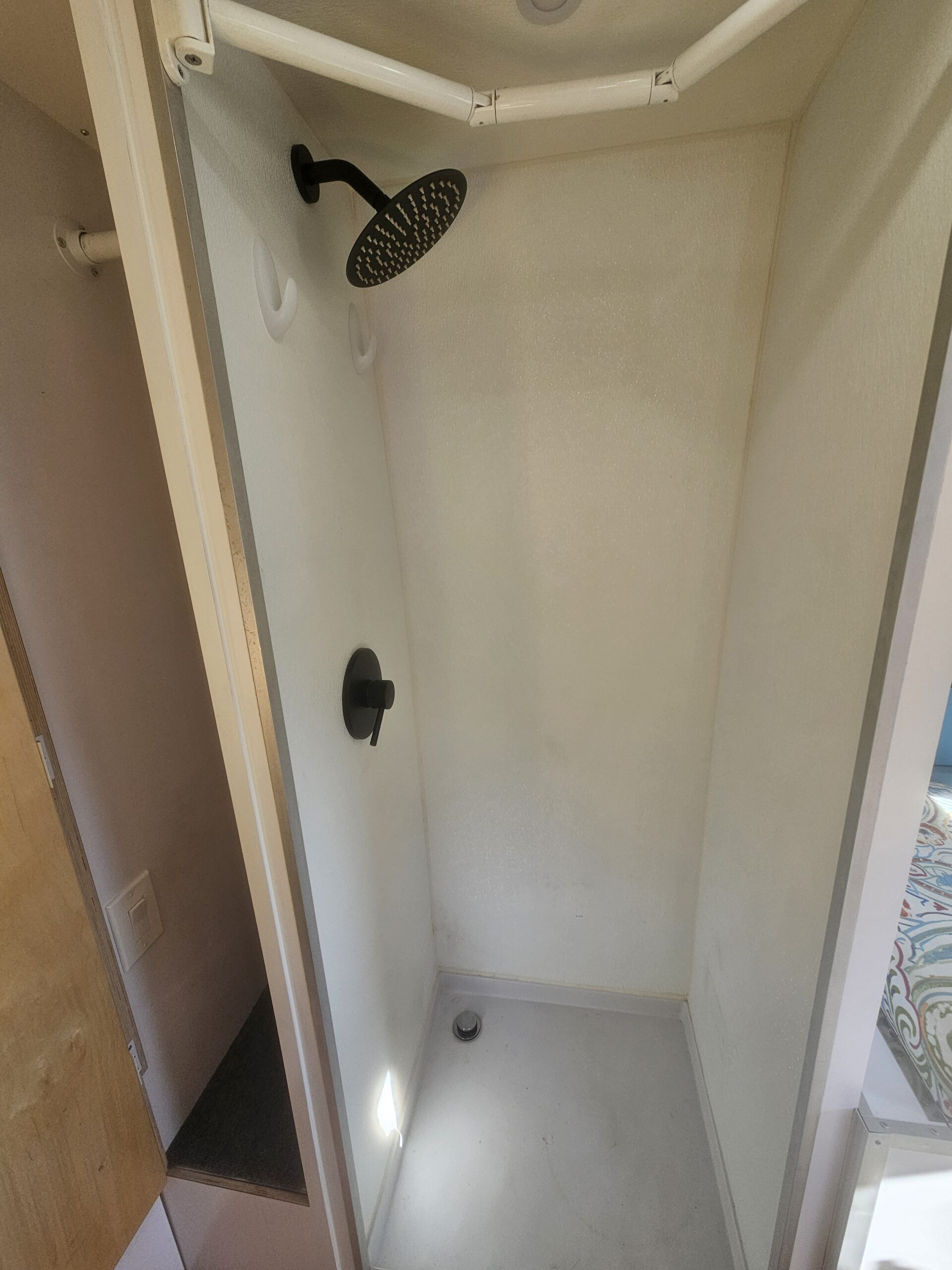 – Shower area with extra-room curtain rod
