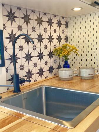 • Stainless steel sink w/ faucet + soap dispenser
