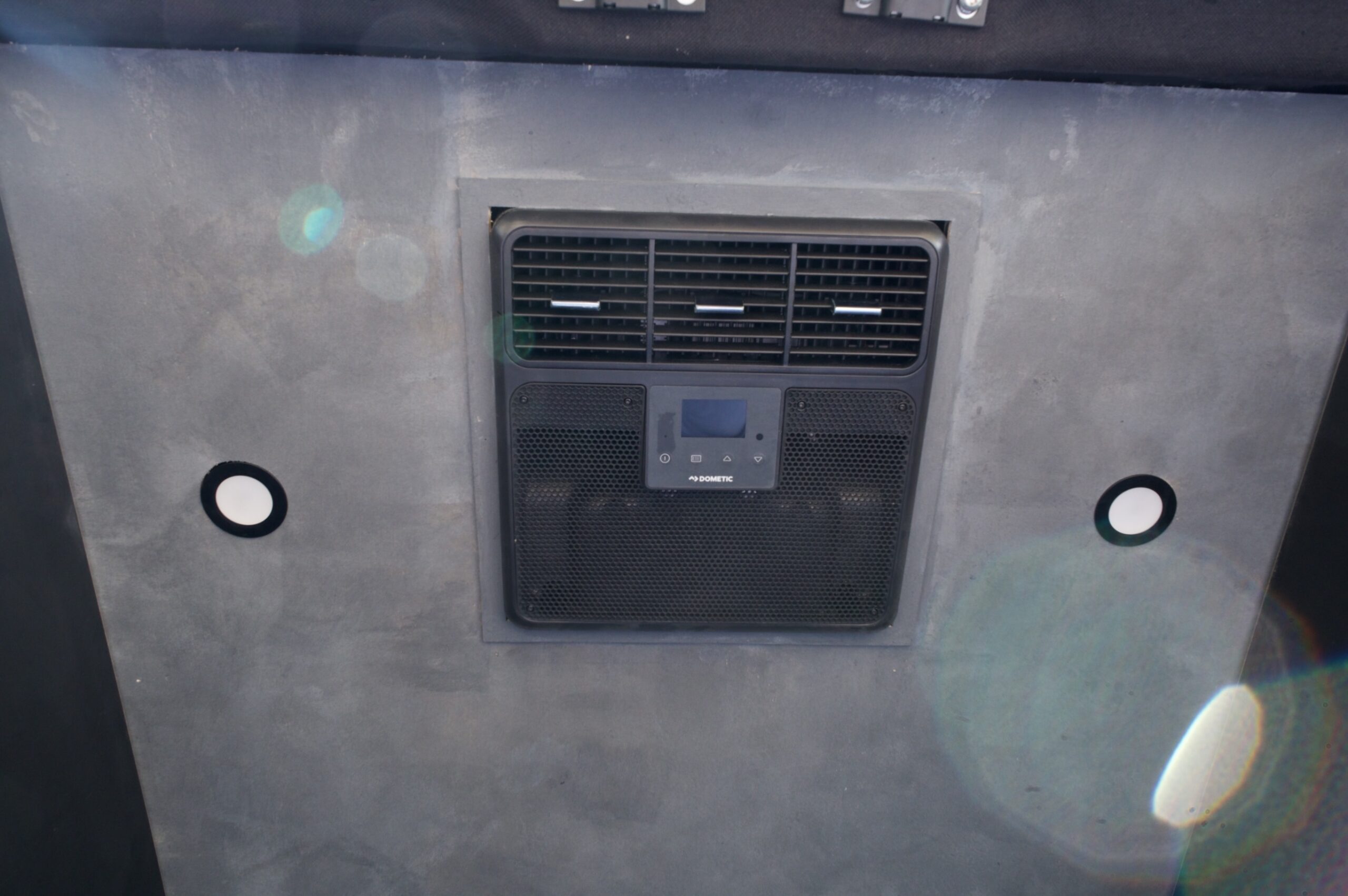 Dometic RTX2000 AC unit installed over bed.