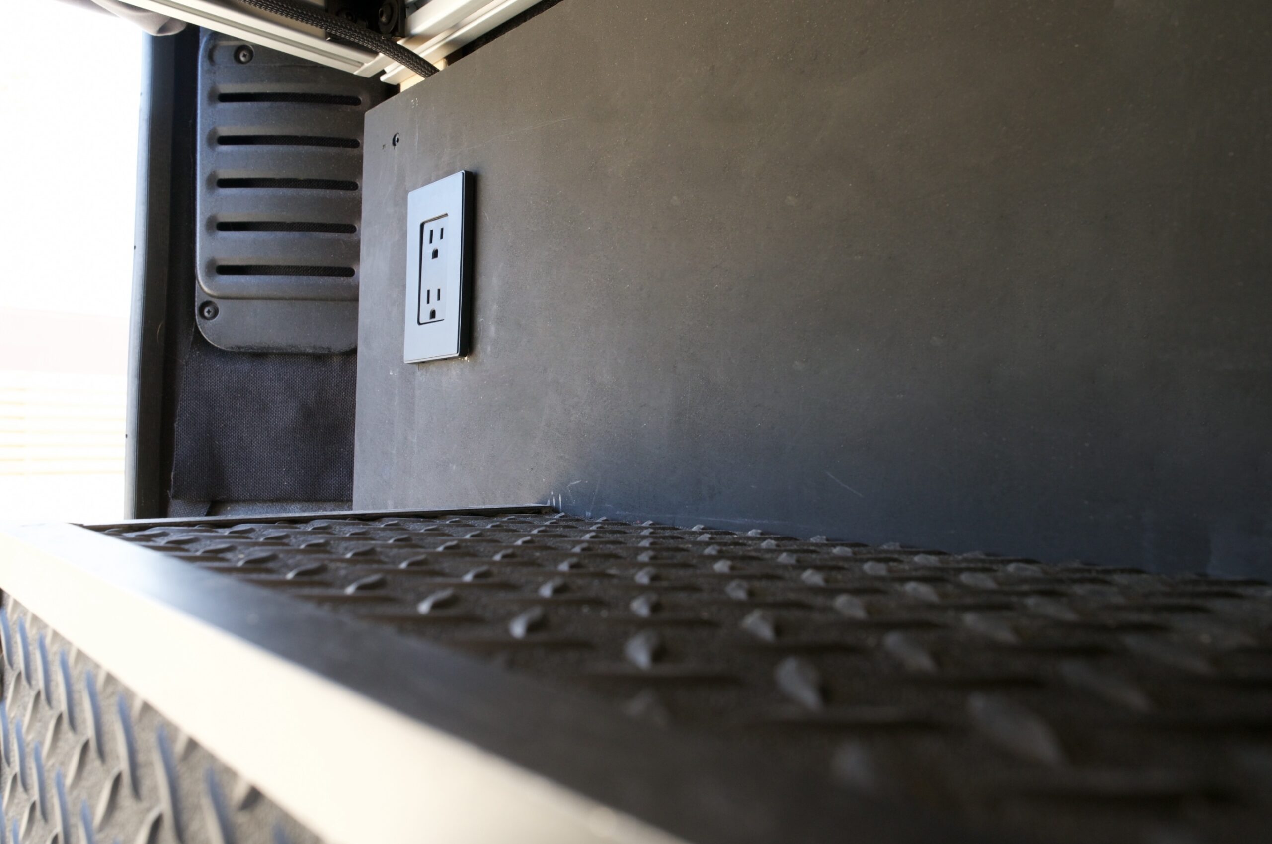 Rubber garage flooring to keep all your gear from sliding.