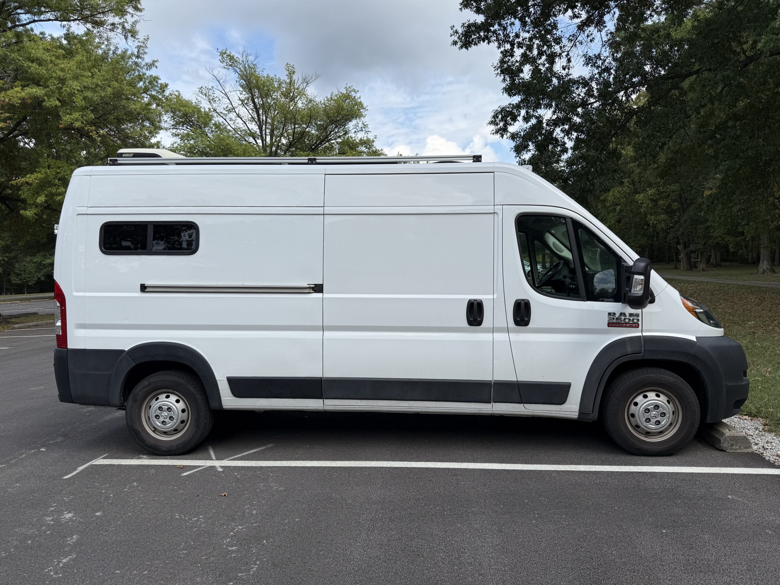 Four – 100 watt solar panels mounted to the roof rack for a total of 400 potential watts of solar.