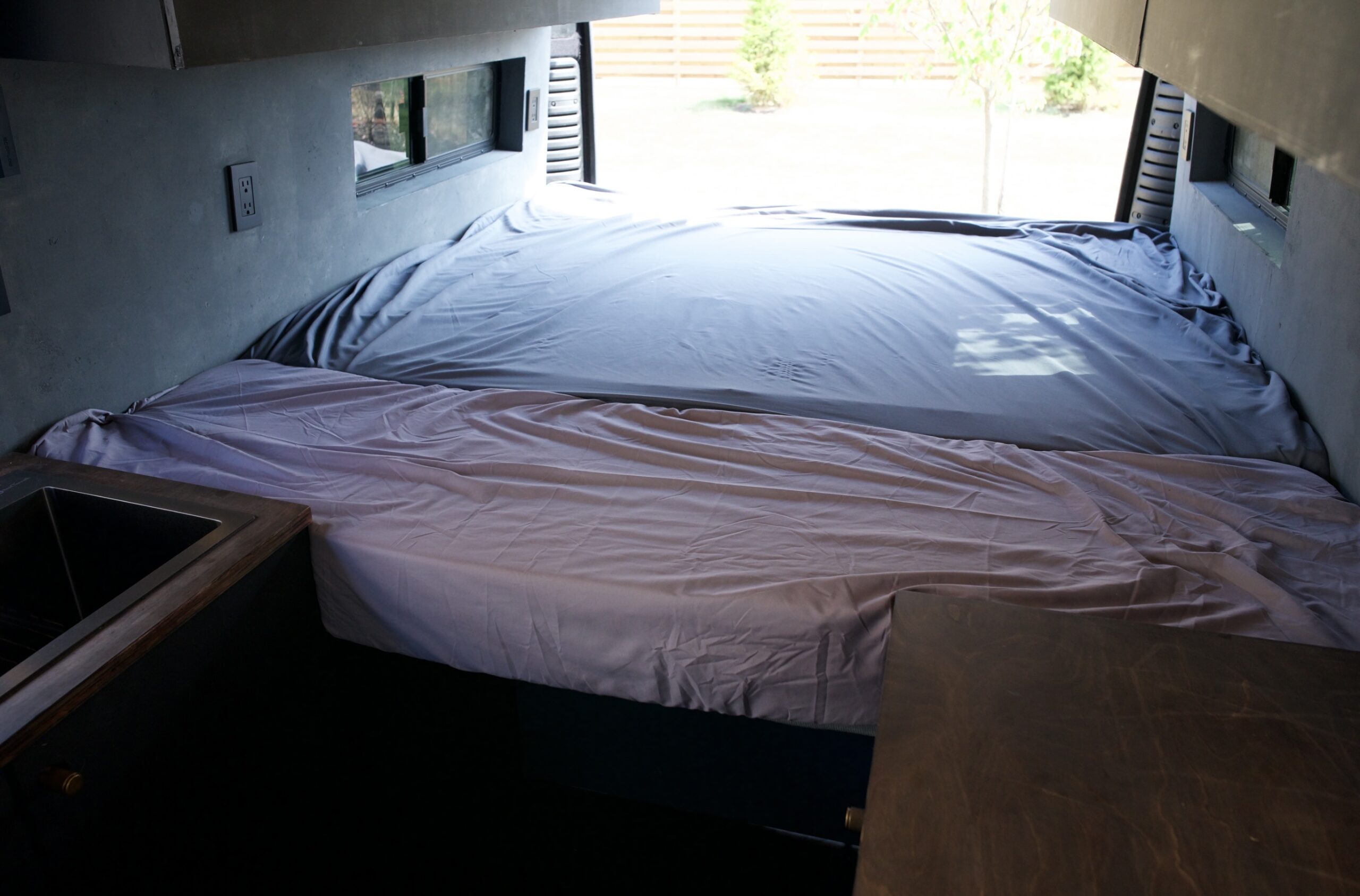 Two sliding windows on either side of the bed allows for a nice breeze while sleeping.