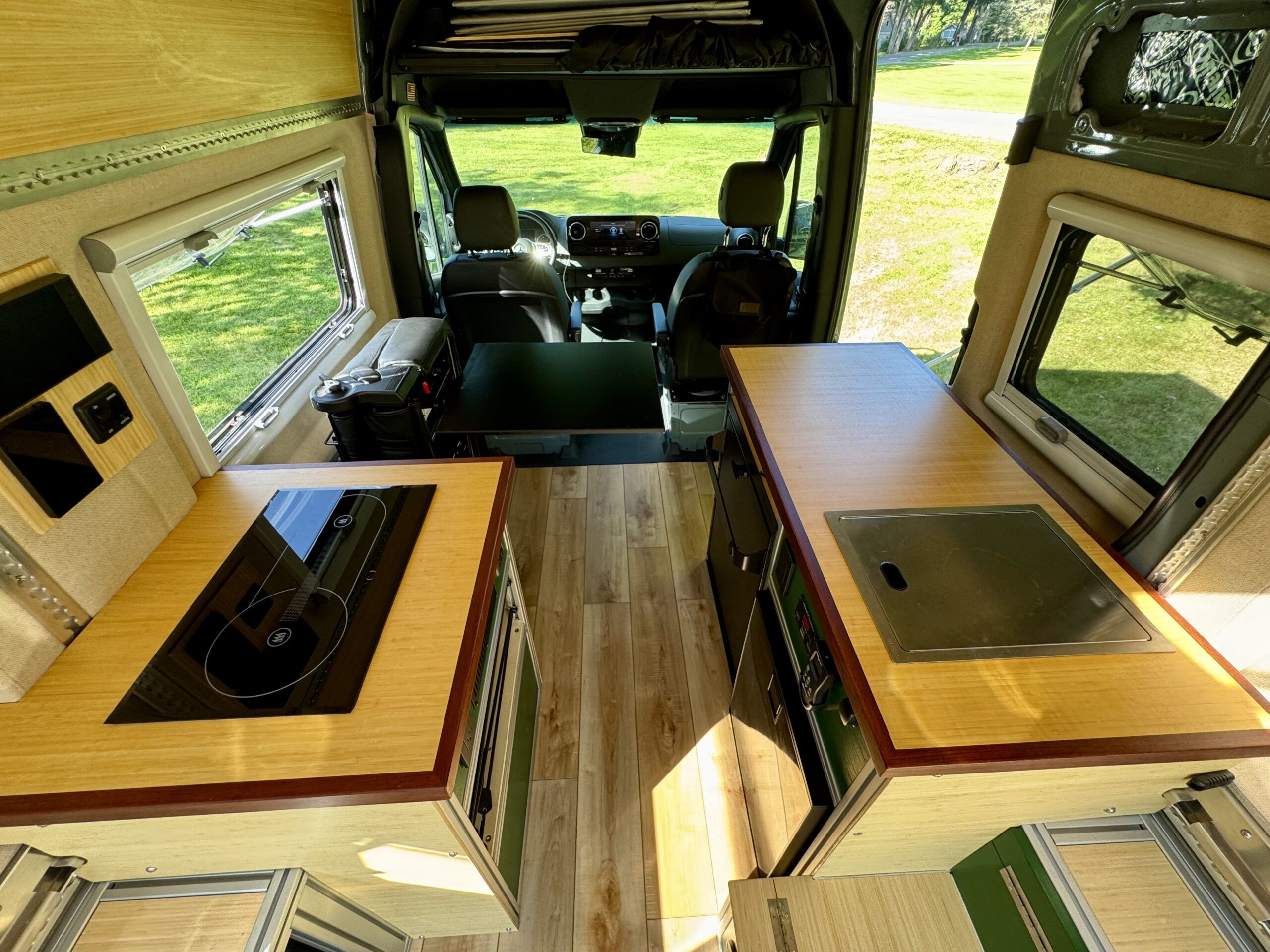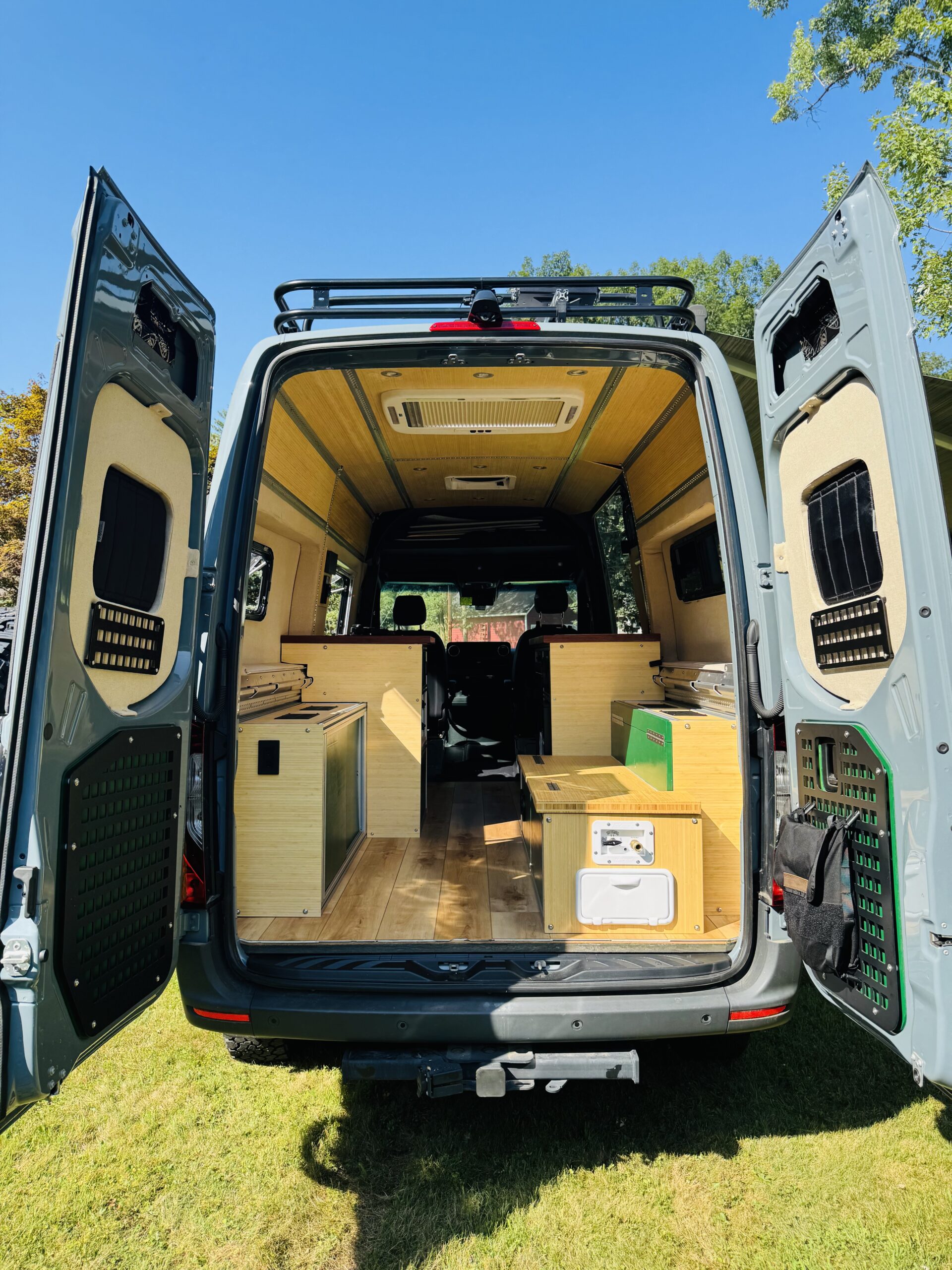 I am selling my custom built 2022 4x4 144 Sprinter Van with a 3.0L Diesel engine and 12,XXX miles. I have pour my heart and soul into designing and building this campervan and spared no expense along the way. I built this vehicle to be self-sufficient, modular and very adaptable to enjoy during all 4 seasons of the year. It can safely seats 4 and can accommodate sleeping 4 with the addition with Luno Van Front Cab Mattress (not included) and a single person sleeping pad on the floor.