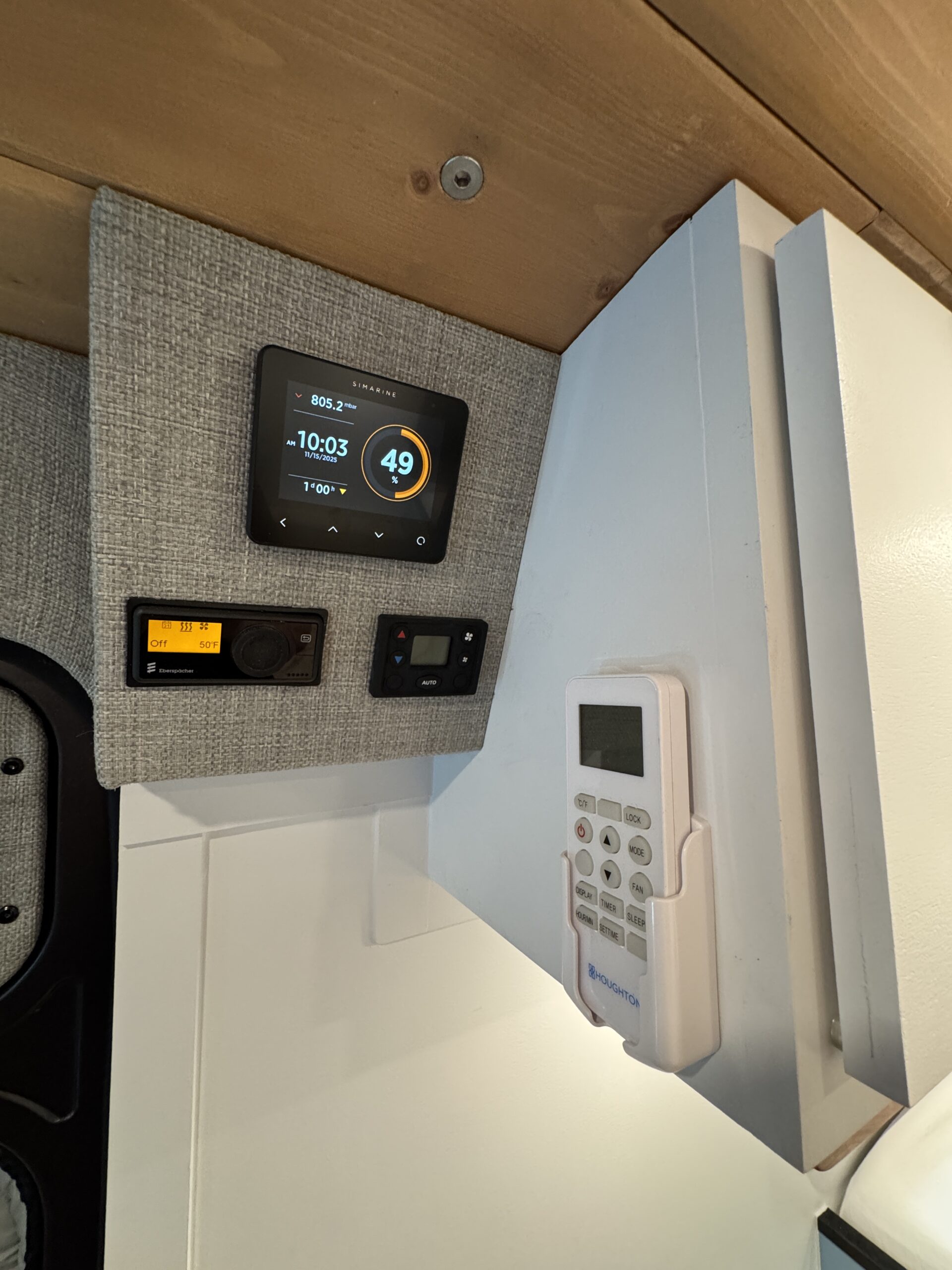 Houghton 9.5k BTU, low profile, roof-mounted air conditioner (significantly quieter than the Dometic rtx2000) –