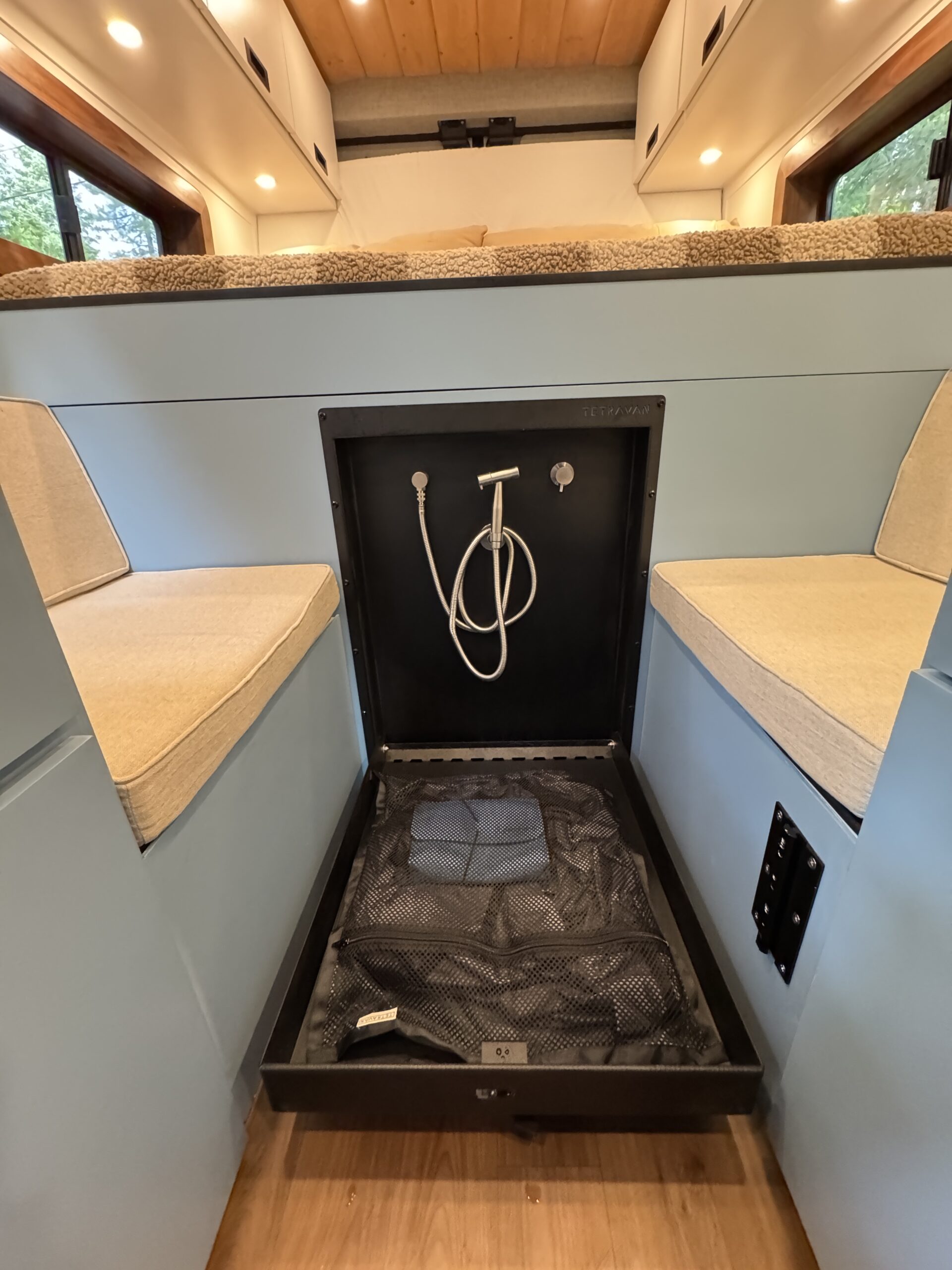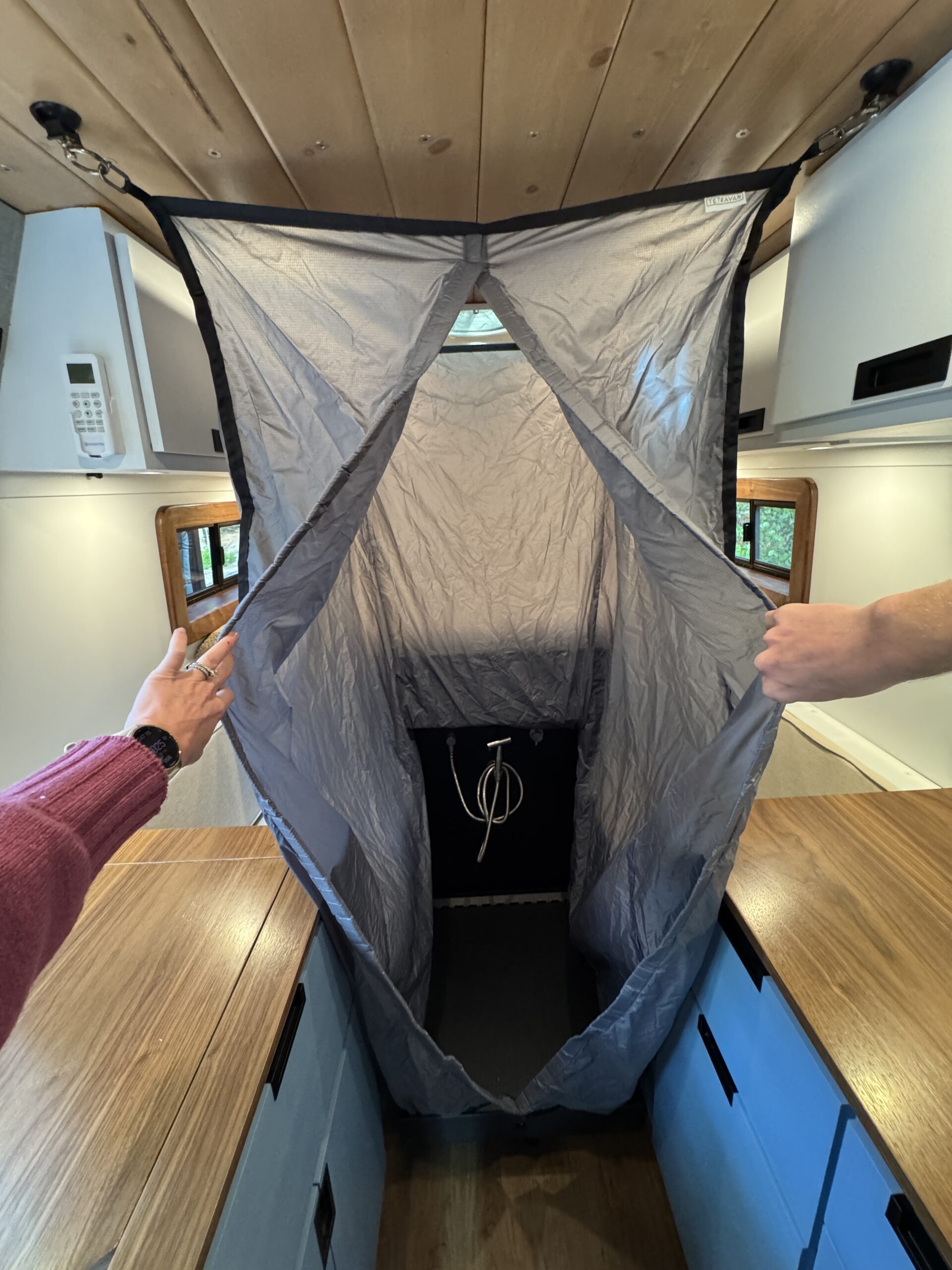 Tetravan 2.1 folding interior shower w/ magnetic shower curtain