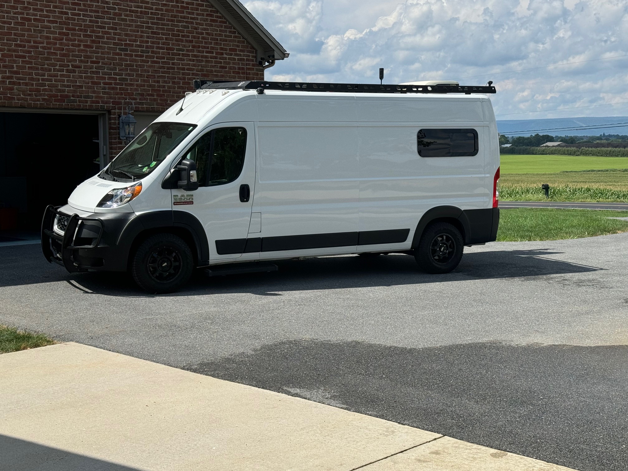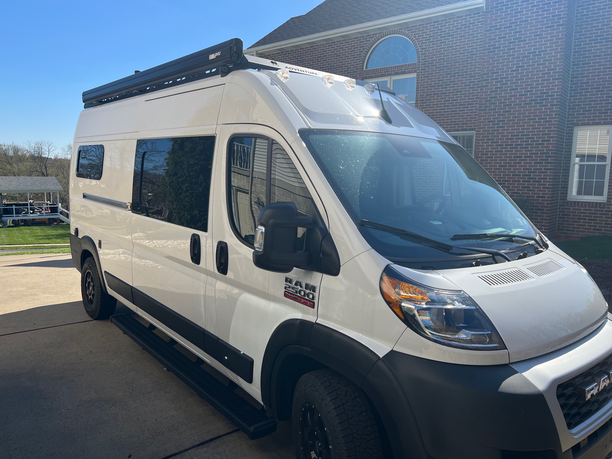 Running boards for easy entry for front doors and sliding side door.