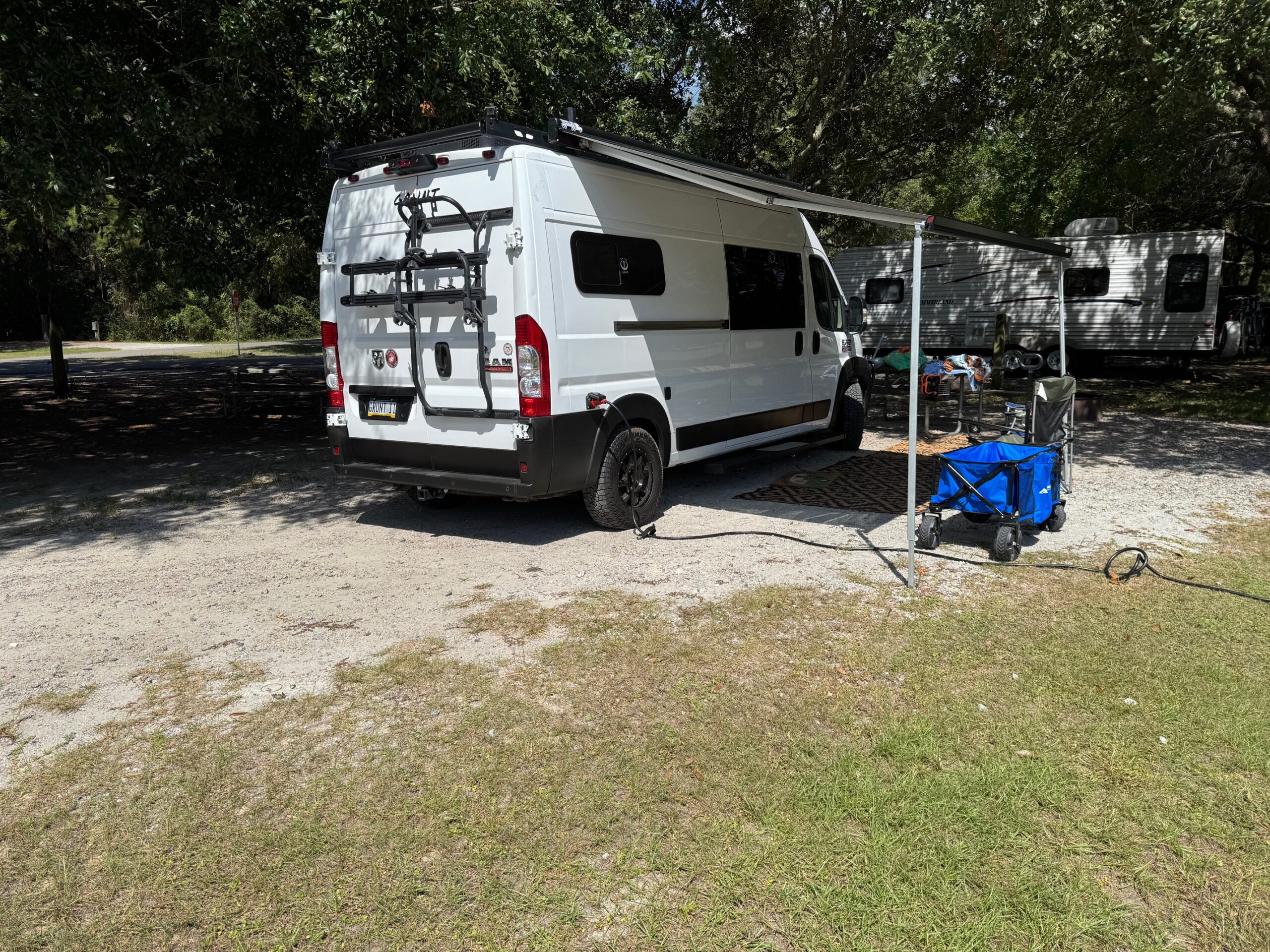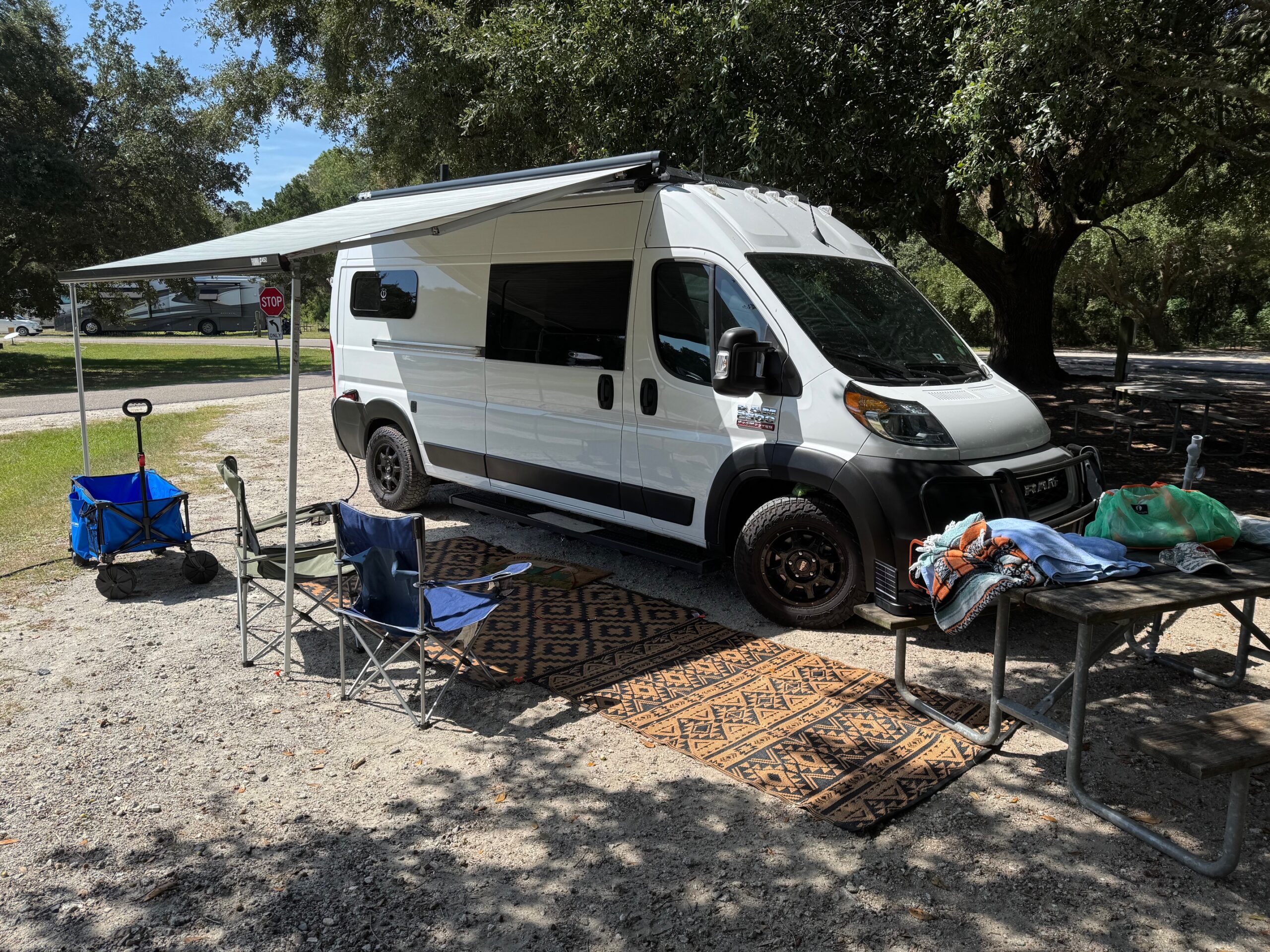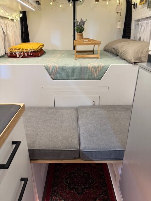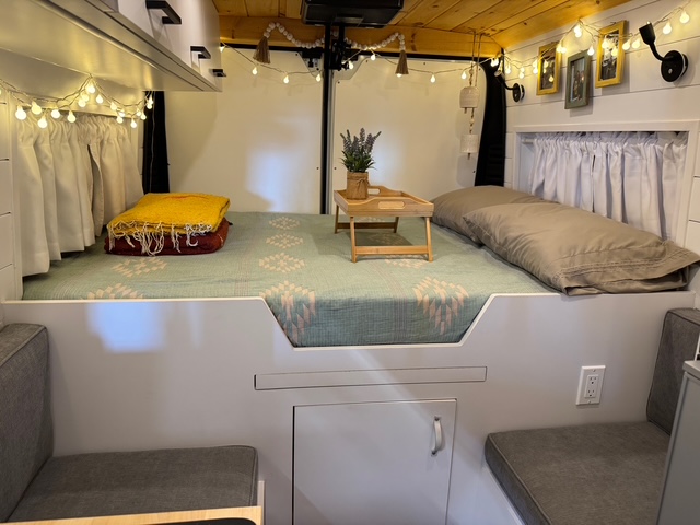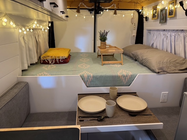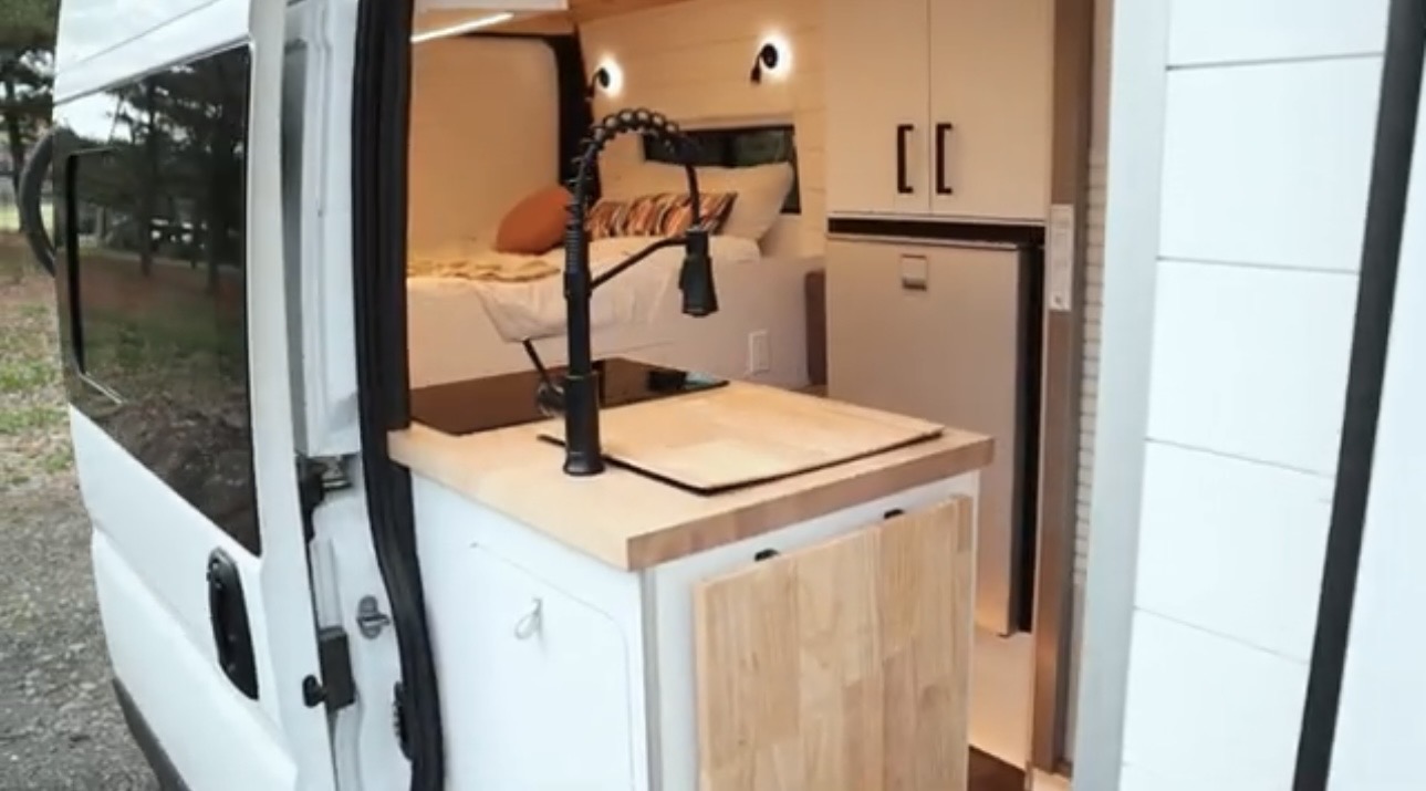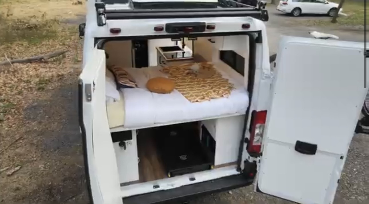 2022 Ram Promaster 2500, 159 Wheel Base, with under 25,000 miles. In the same condition as when brought home, new. When not traveling, it has been kept in a temperature-controlled building. This van is completely self-sustaining and designed for off-grid travel, offering all the modern conveniences of a home, without sacrificing comfort. Within it is a full kitchen, containing an 83 liter Isotherm refrigerator, microwave oven, kitchen sink with motion activated faucet, induction cook top, full size shower, dry flush toilet (so no black water to drain), tons of storage, butcher block counter with additional flip-up counter space, heating, air conditioning, fan, all around camera security protection, Weboost, 22 gallon fresh water tank, 2.5 gallon water heater, 12 gallon gray water tank, full-queen size bed, 600 watts of solar, 2 – 280 ah lithium batteries, PEX Plumbing, outdoor shower, painted shiplap wall division from front cab, Wolfbox electronic front and rearview mirror cameras, Camel roof Rack, Thule double bike rack, custom window covers, custom vinyl plank floor, additional stow-away bed, hidden retractable dinette table, fold down outdoor table, running boards, grill guard, added heat protection for plumbing that will sustain -24 degrees. Be sure to watch the YouTube video explaining all of the features.
