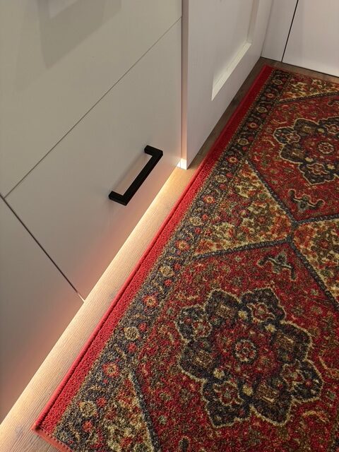 Multiple lighting options, as well as dimmers. Twelve puck lights as well as under