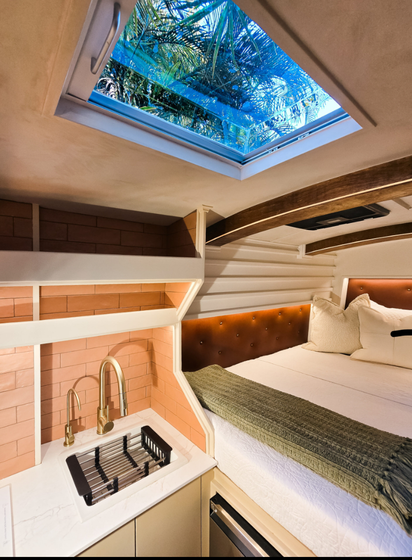• Side-by-side bed + shower layout with a hideaway toilet – Max space, no compromises