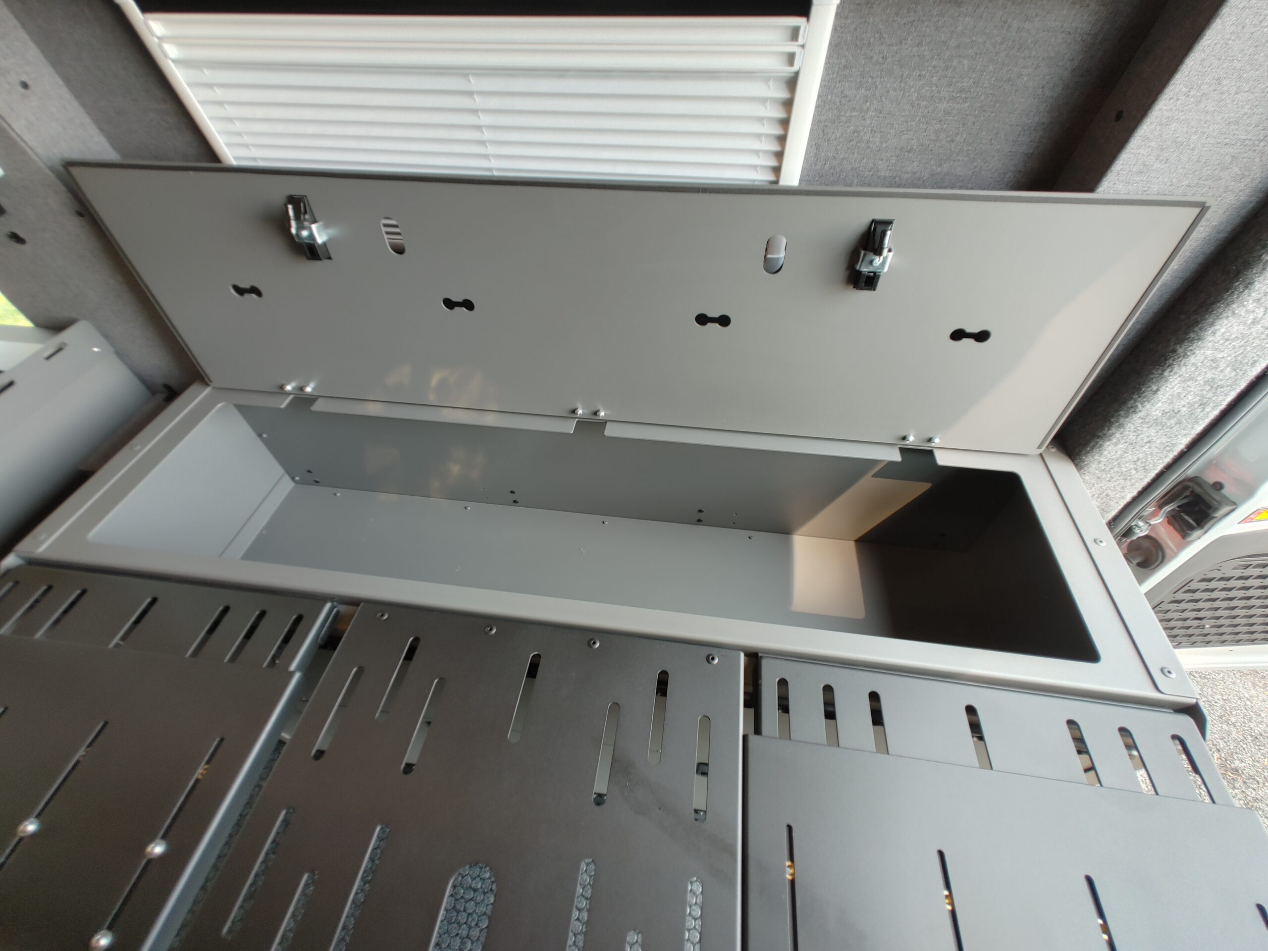 - L-track (black / anodized) added to area over bed on both sides above bed, on tall fender boxes and on floor