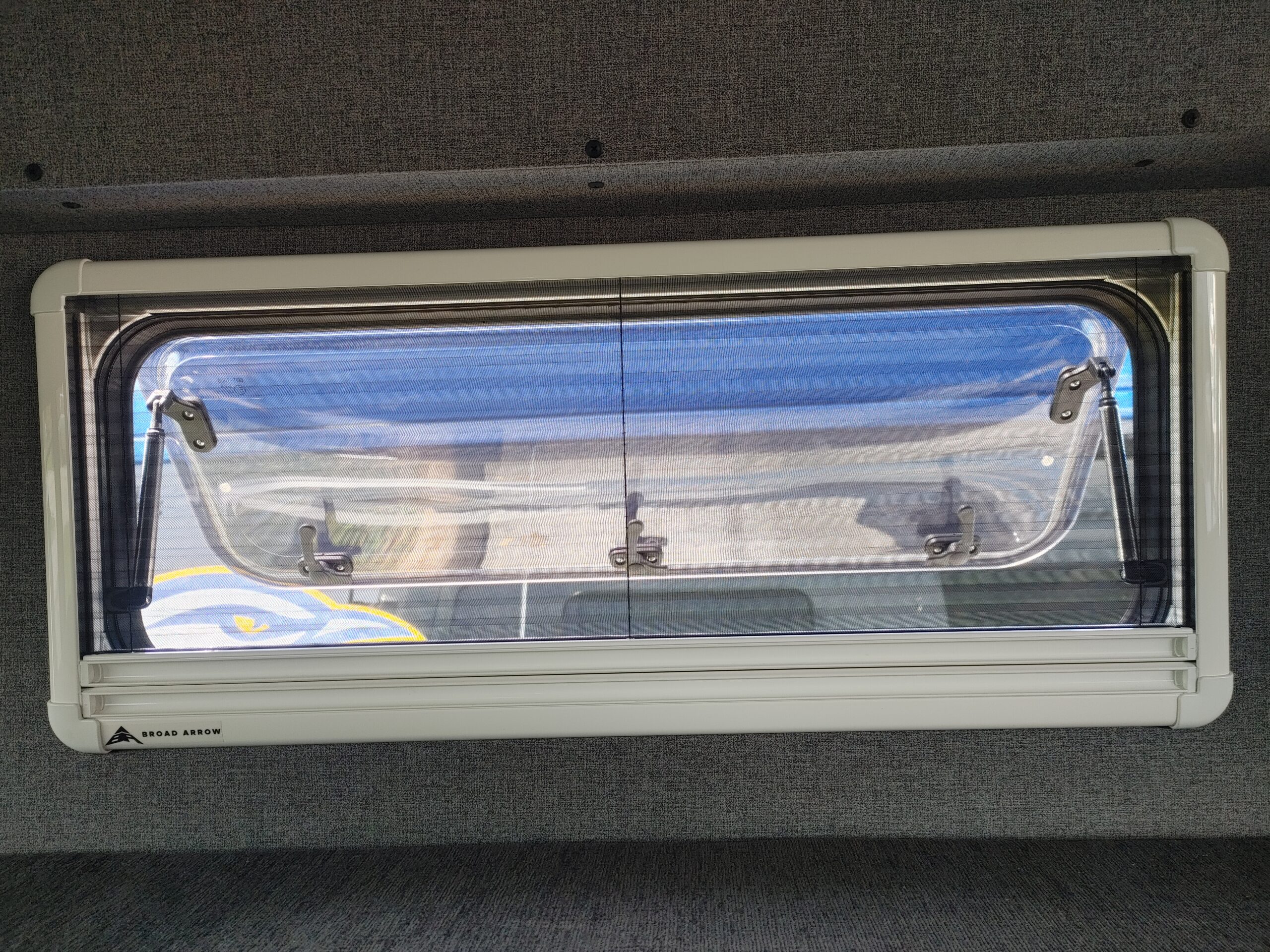 The Broad Arrow bunk windows with built-in screens and blinds, an AM Auto half-slider window, Webasto Air Top EVO 40 Gas Heater with smart thermostat, and a Maxxair deluxe roof vent - help to maintain a pleasant atmosphere. An all-season dream for the adventurous traveler!