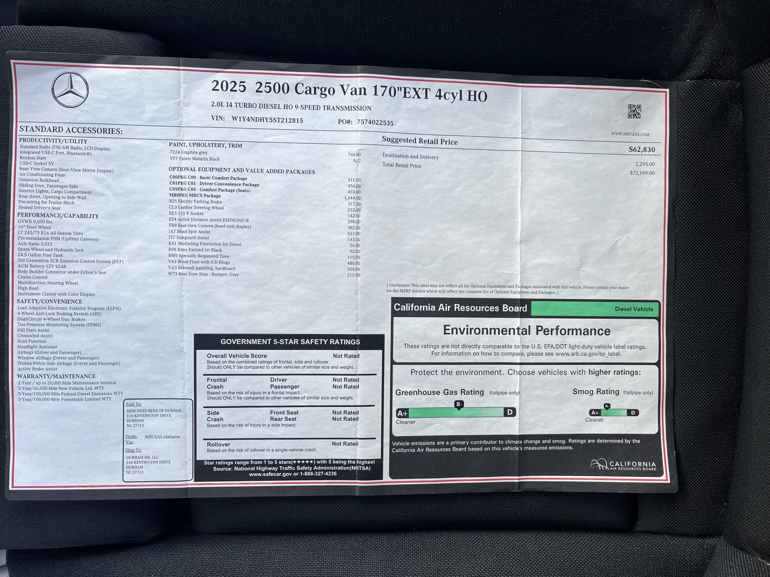2025 Mercedes Sprinter 2WD Turnkey for OTR Expedite Driving