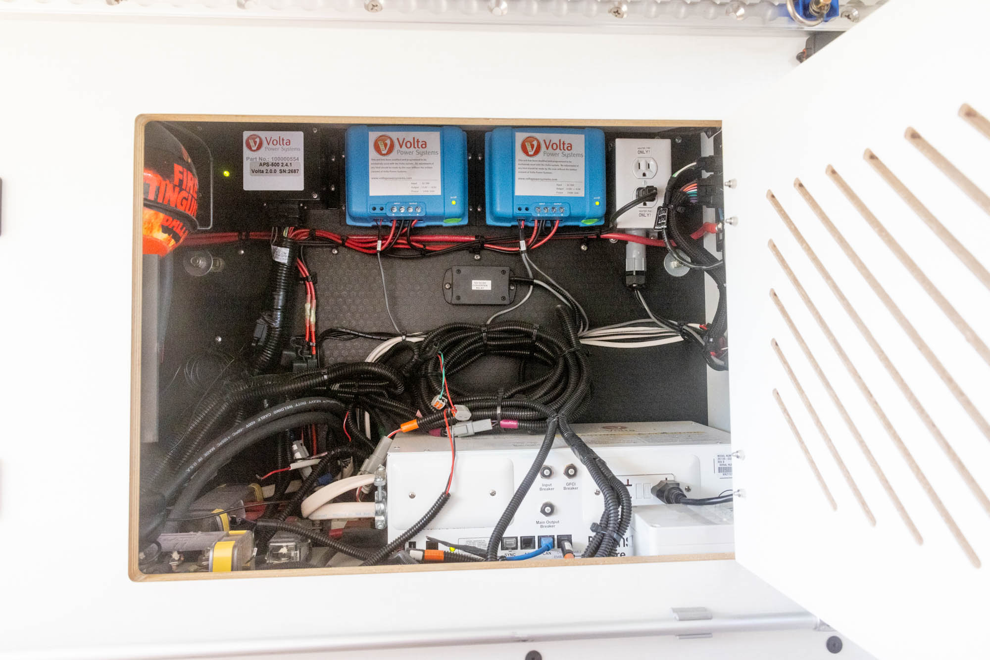 - Volta 6.6kWh system with secondary alternator charging (reliable off-grid use for 24-48 hours, easily extended with driving)
