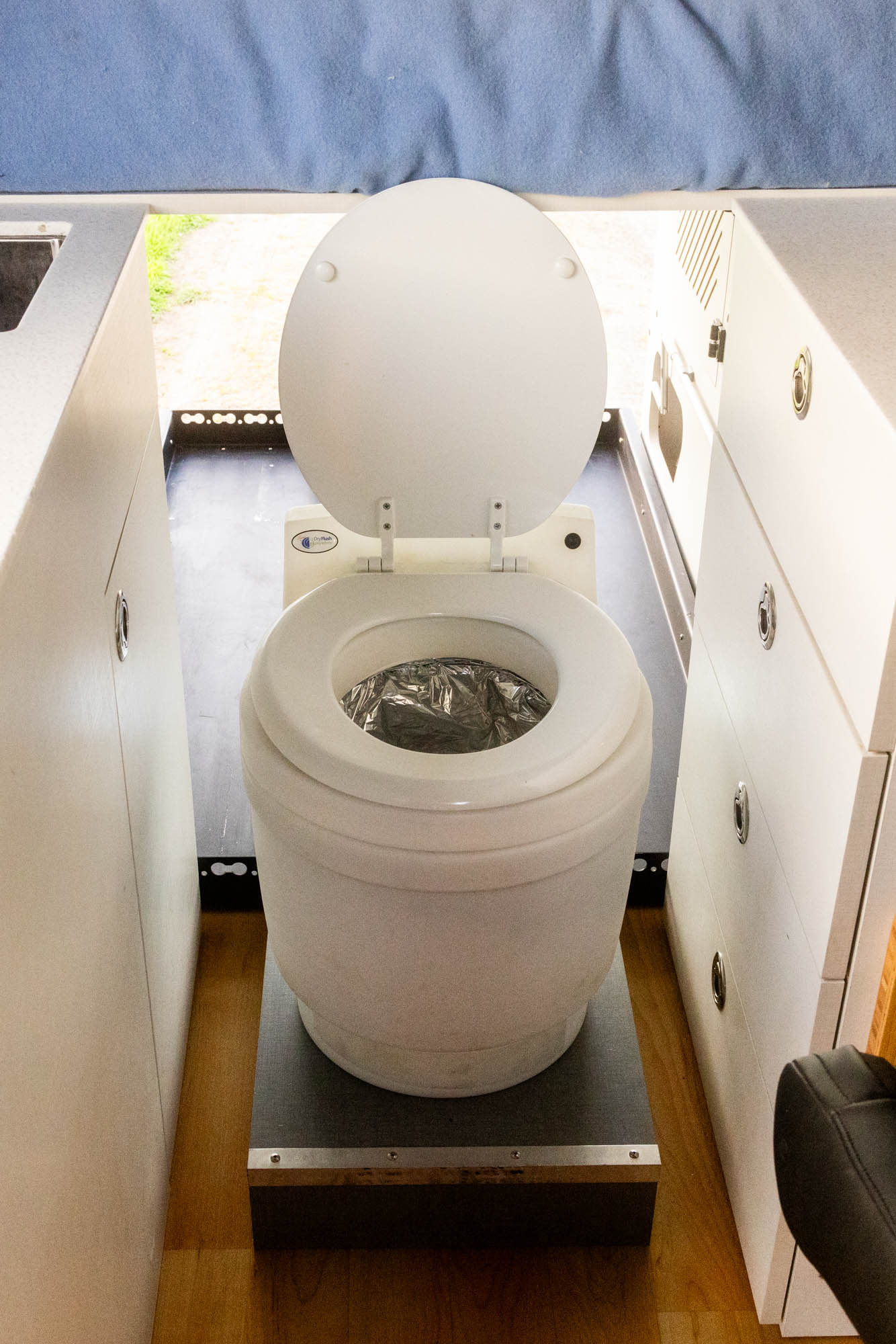 - Custom Toilet Sliding System from rear garage into galley