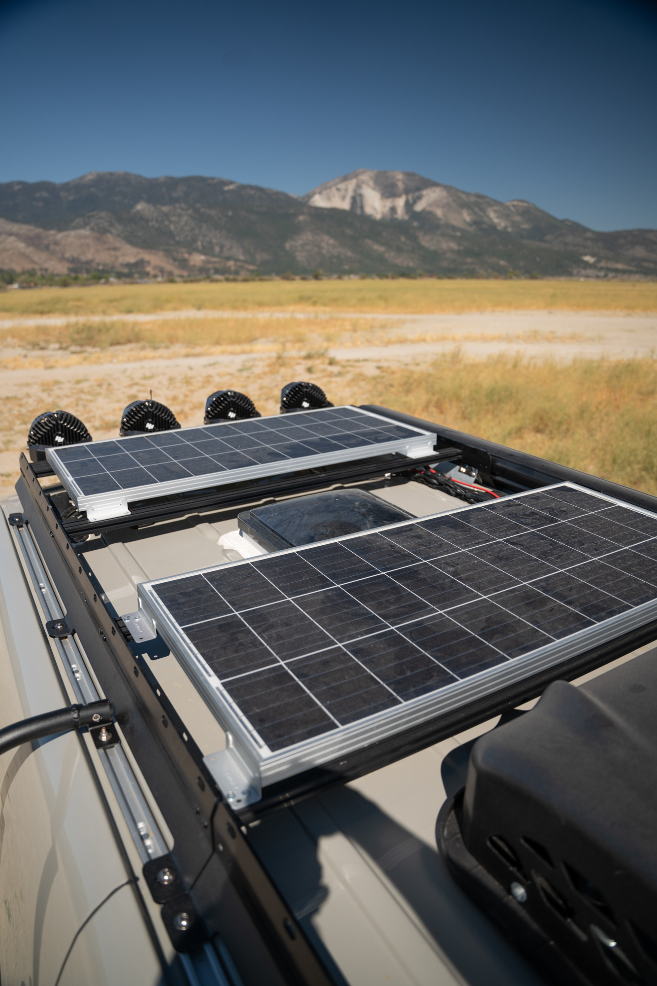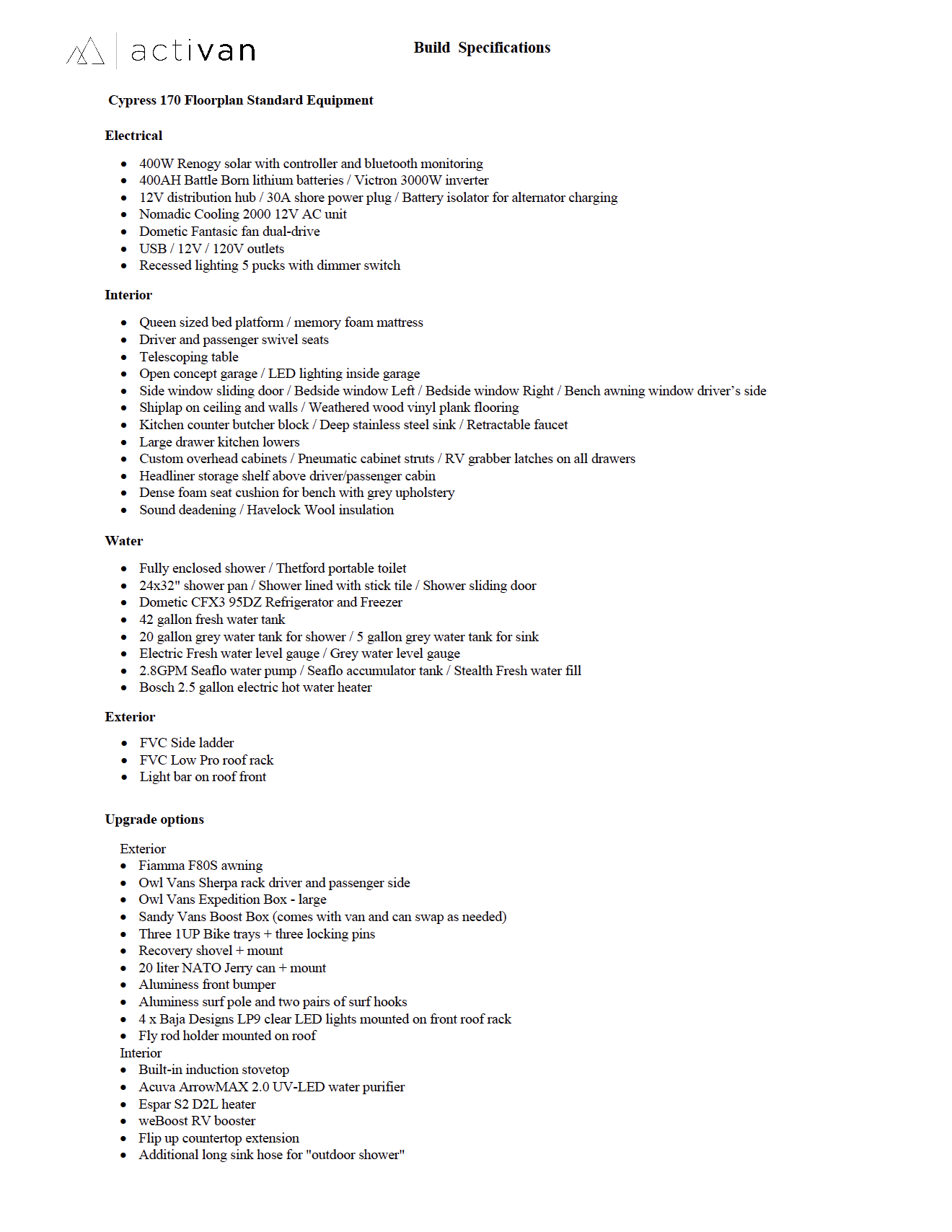 For electrical, the van is equipped with 400Ah of Battle Born lithium batteries and 400W of solar. A Li-BIM DC-to-DC charger is also installed to allow charging while driving or idling. If desired, we can install a larger battery bank or advise on upgrades based on your intended use.