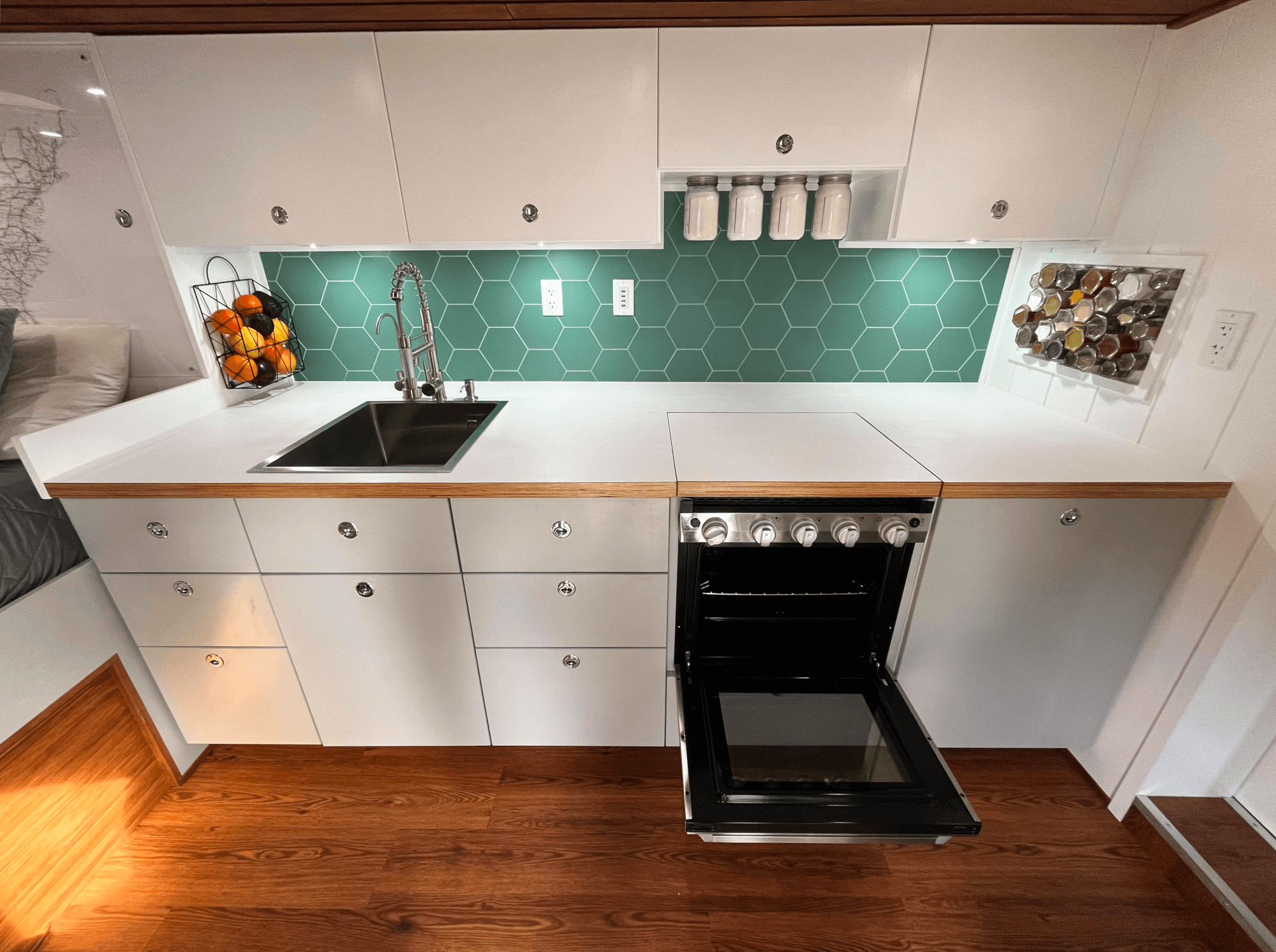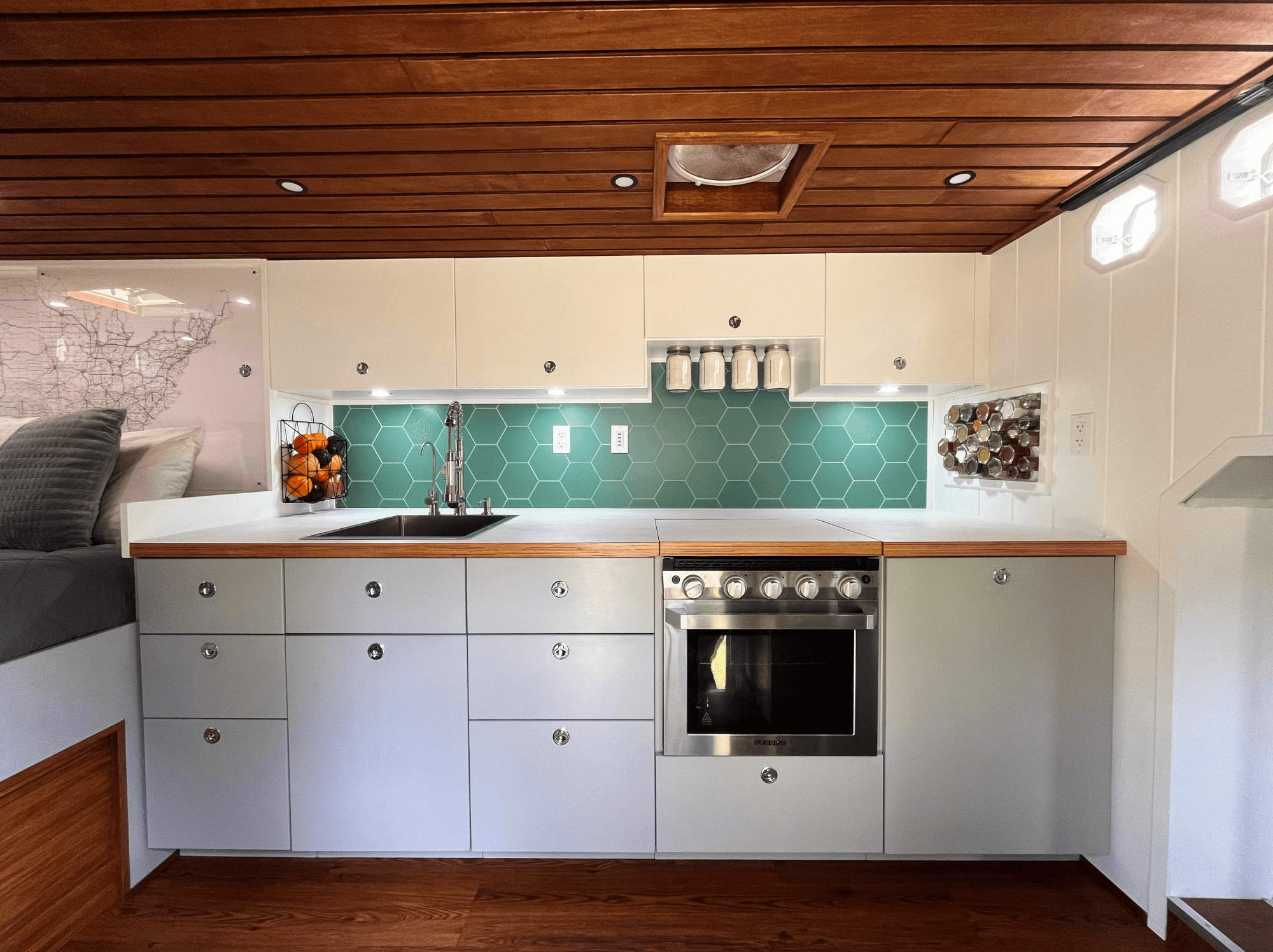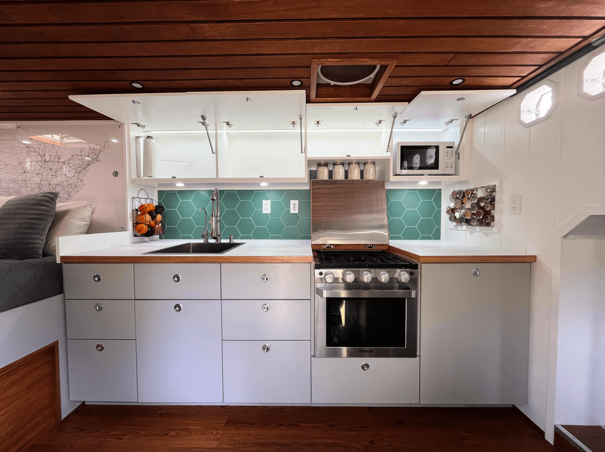 -Plumbed to Tankless Hot Water Heater and Furrion Range/Oven