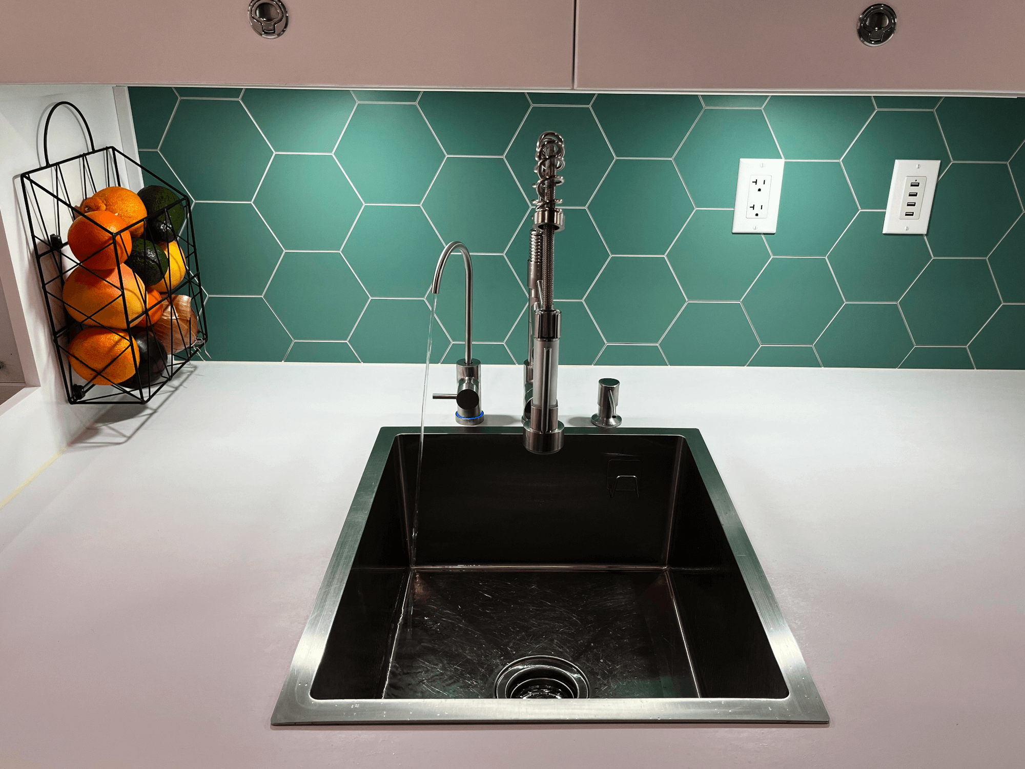 -Magnetic Spice Rack, Fruit Basket, and Stone Composite Backsplash
