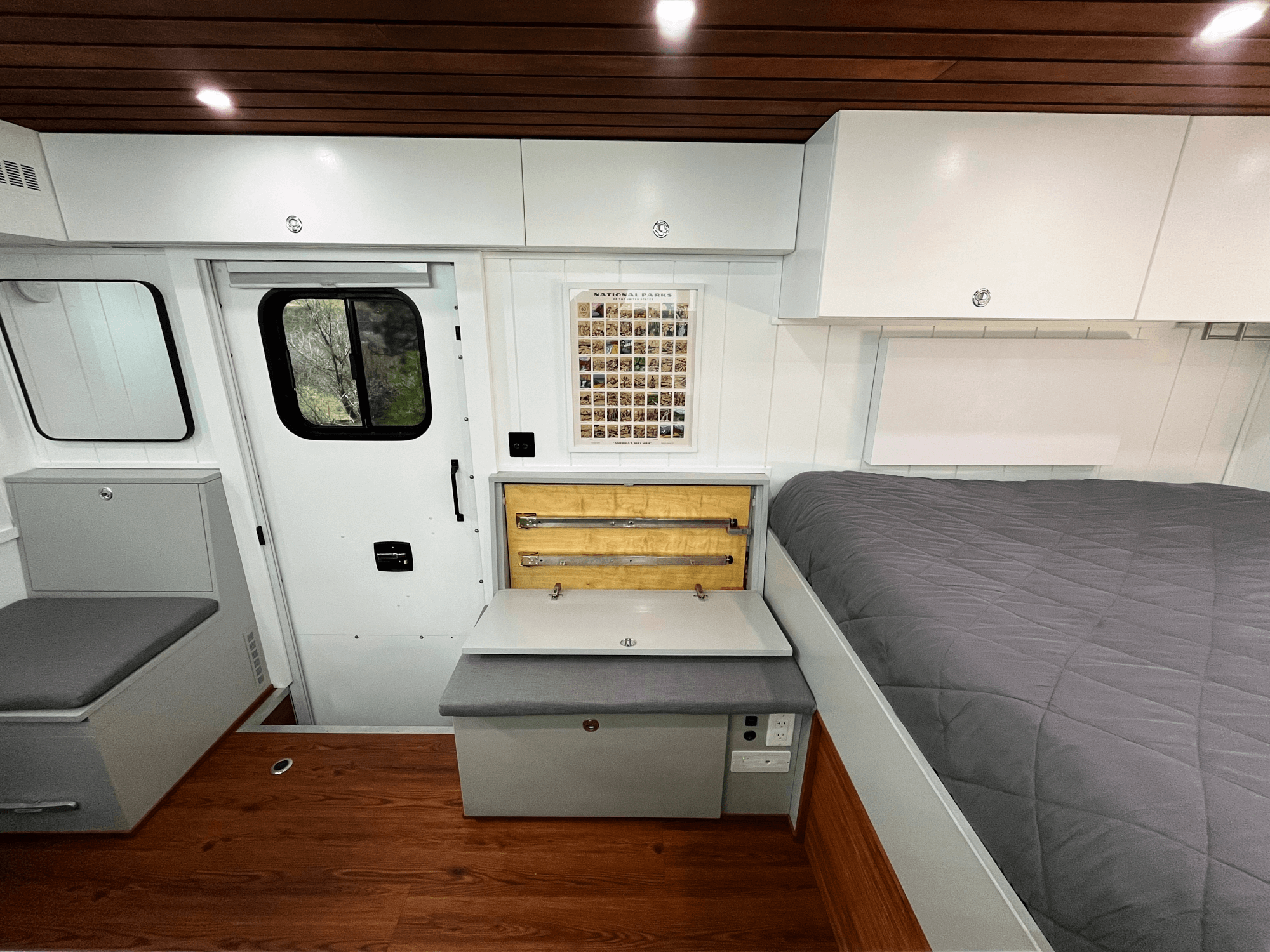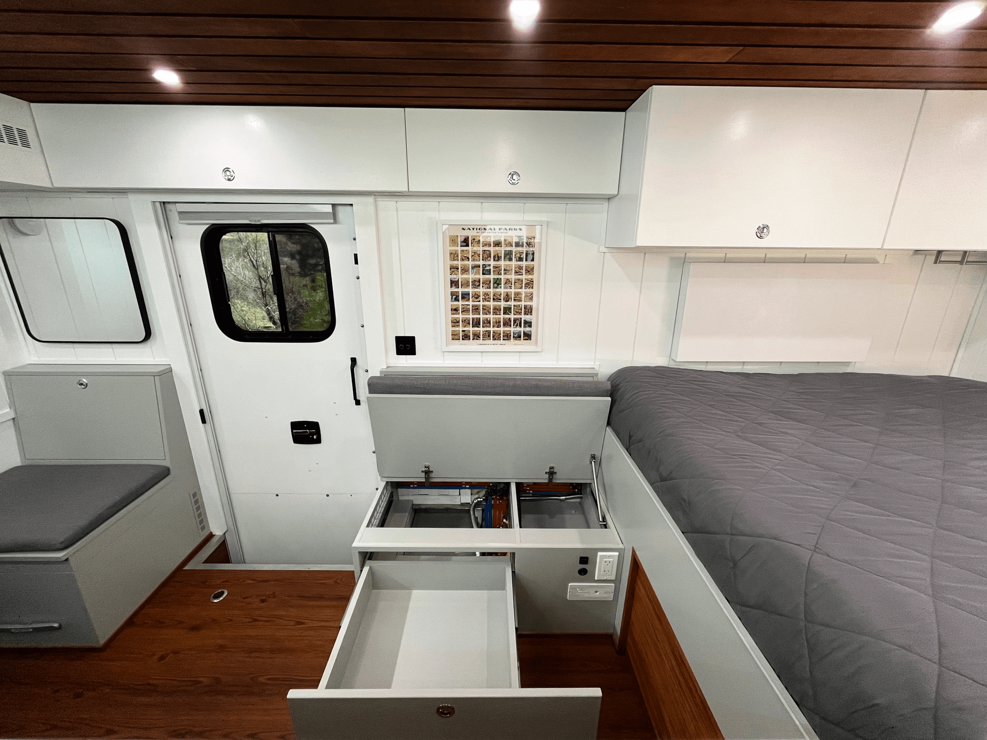 -Gear Storage: 84” Inside storage for MTN bikes/skis & 60” gear drawer