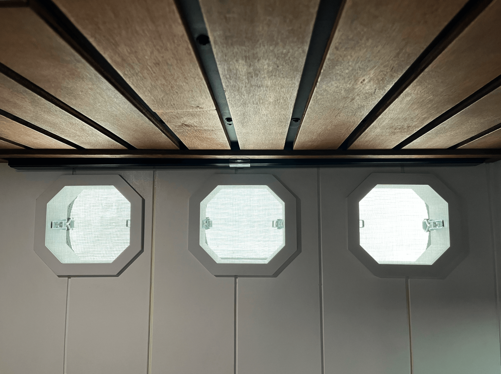 -2x Sirocco Fans and Skylight Overhead with Bug Screen and Shade